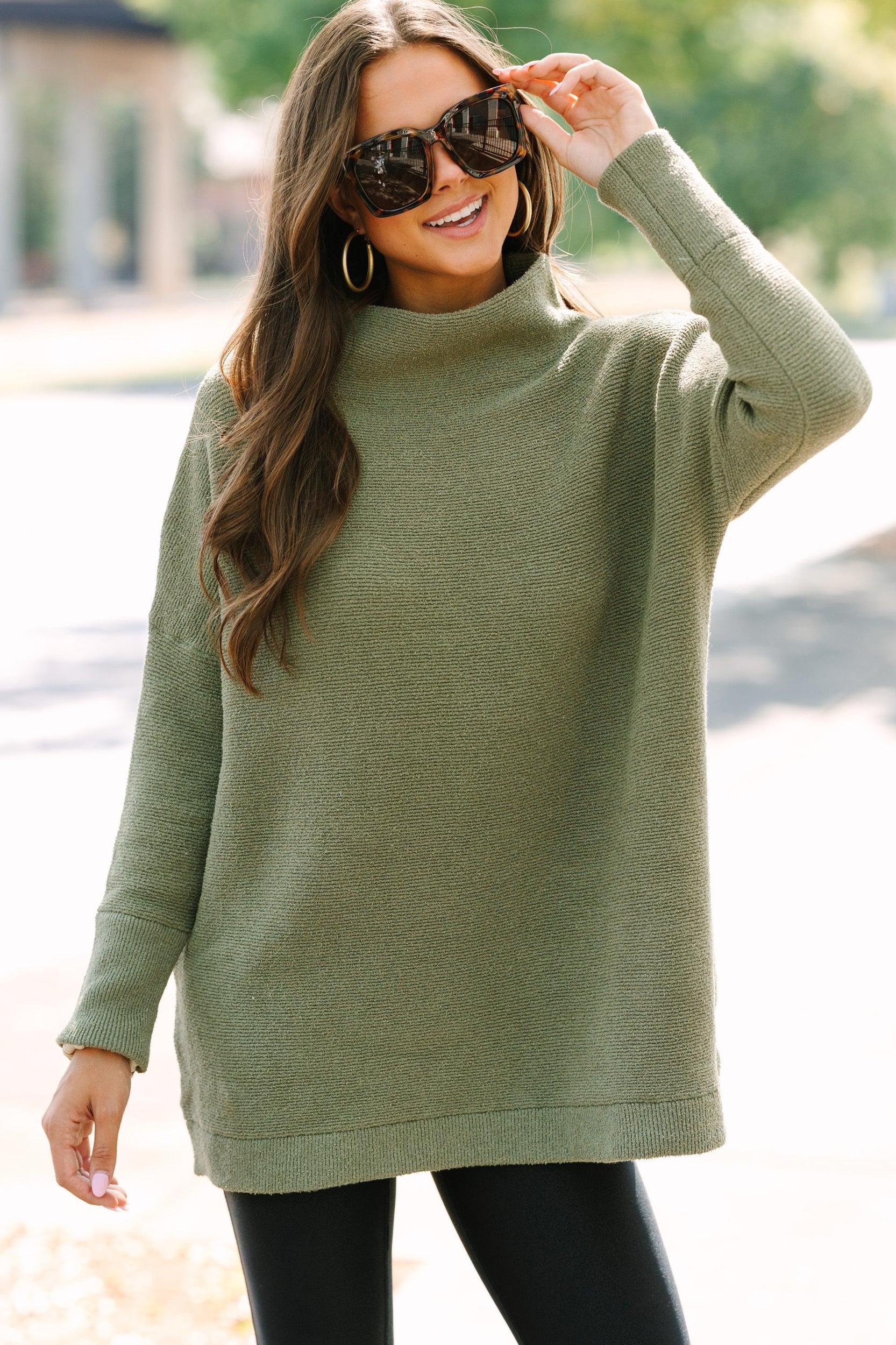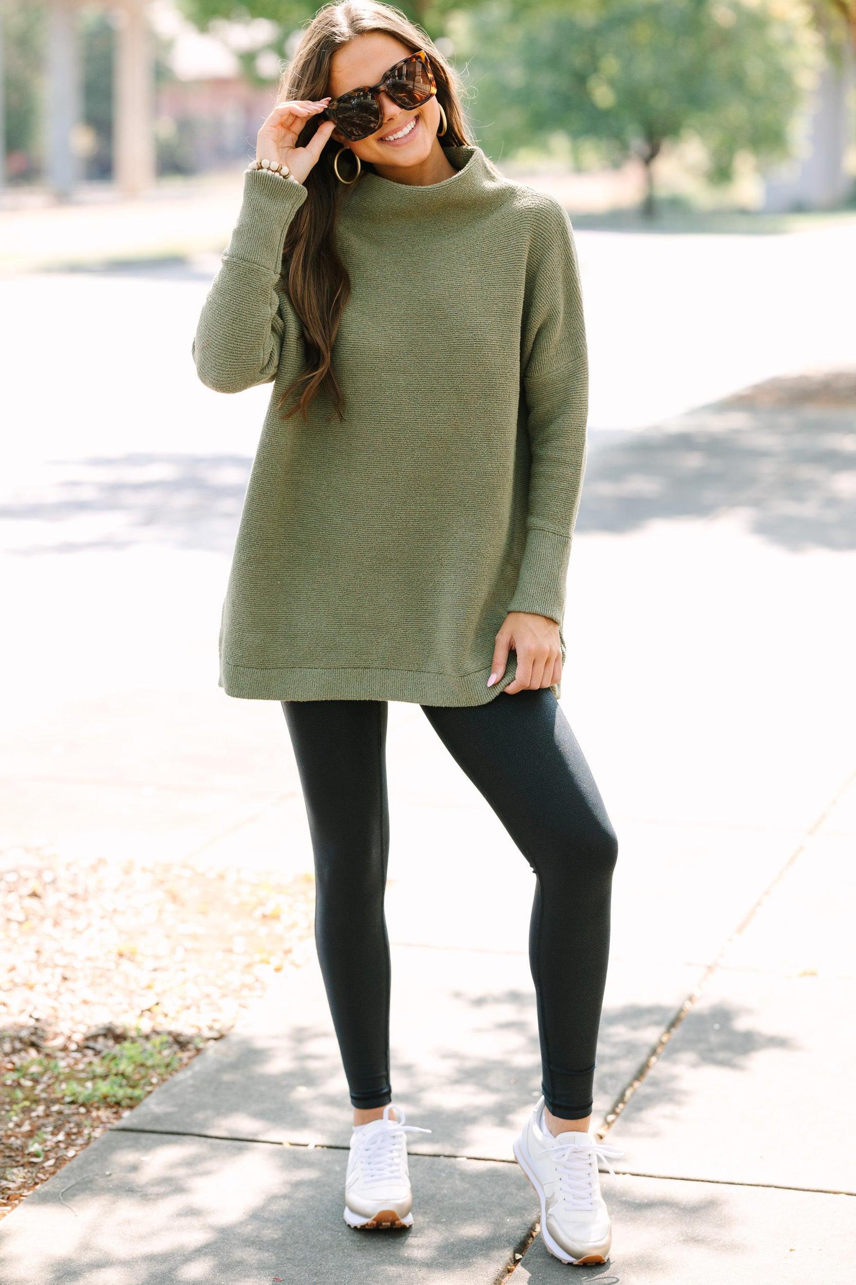 This wide mock neck tunic is the exact point at which style and comfort meet! The length is perfect for pairing with leggings which only adds to the comfort. We also love that you can dress this look up or down by pairing with boots/booties or sneakers depending on what your day looks like! Wide mock neckline Long sleeves with drop shoulders Ribbed fabric Oversized fit Fair stretch Sydney is wearing the small.