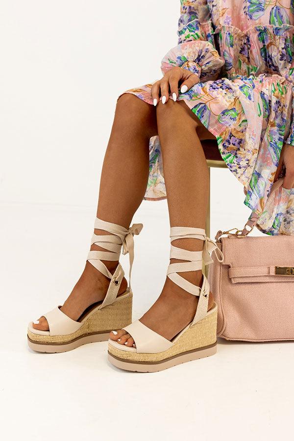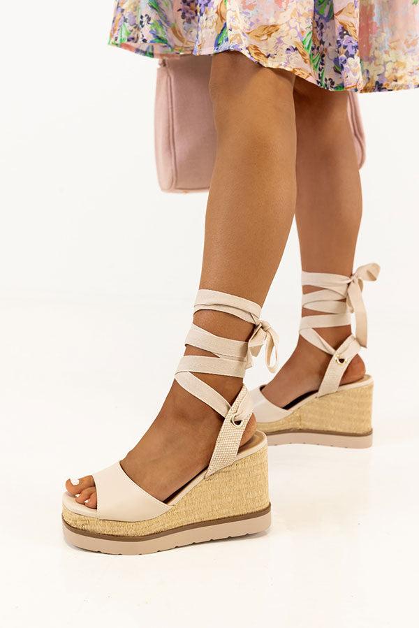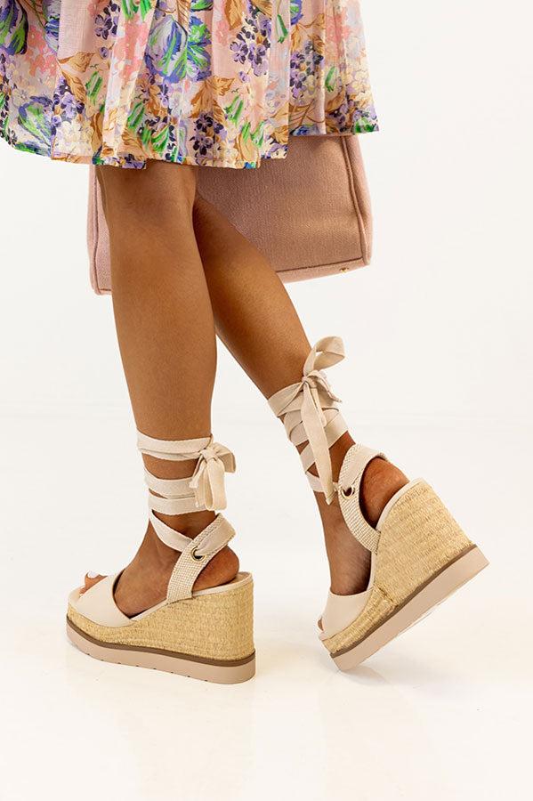 The Sofia Lace Up Wedge In Stone