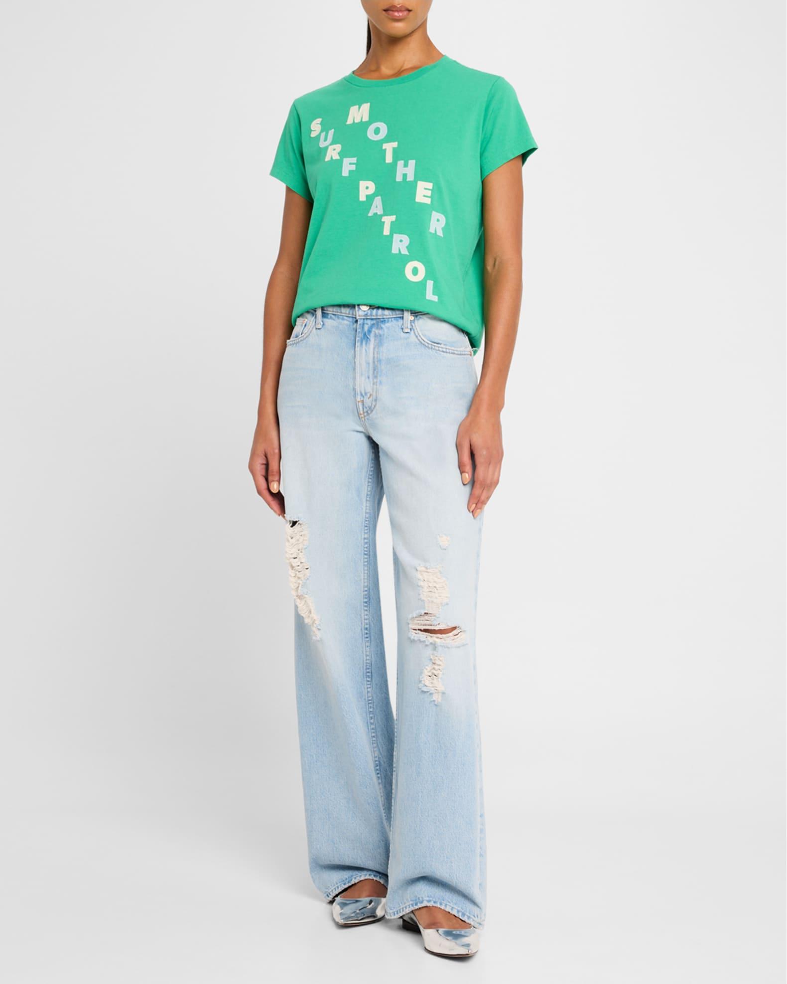 MOTHER "The Spinner Zip Sneak" distressed jeans in faded light-wash denim Approx. 10.8" rise; 32" inseam High rise Five-pocket style Wide legs Full length Button/zip fly; belt loops Cotton Made in USA