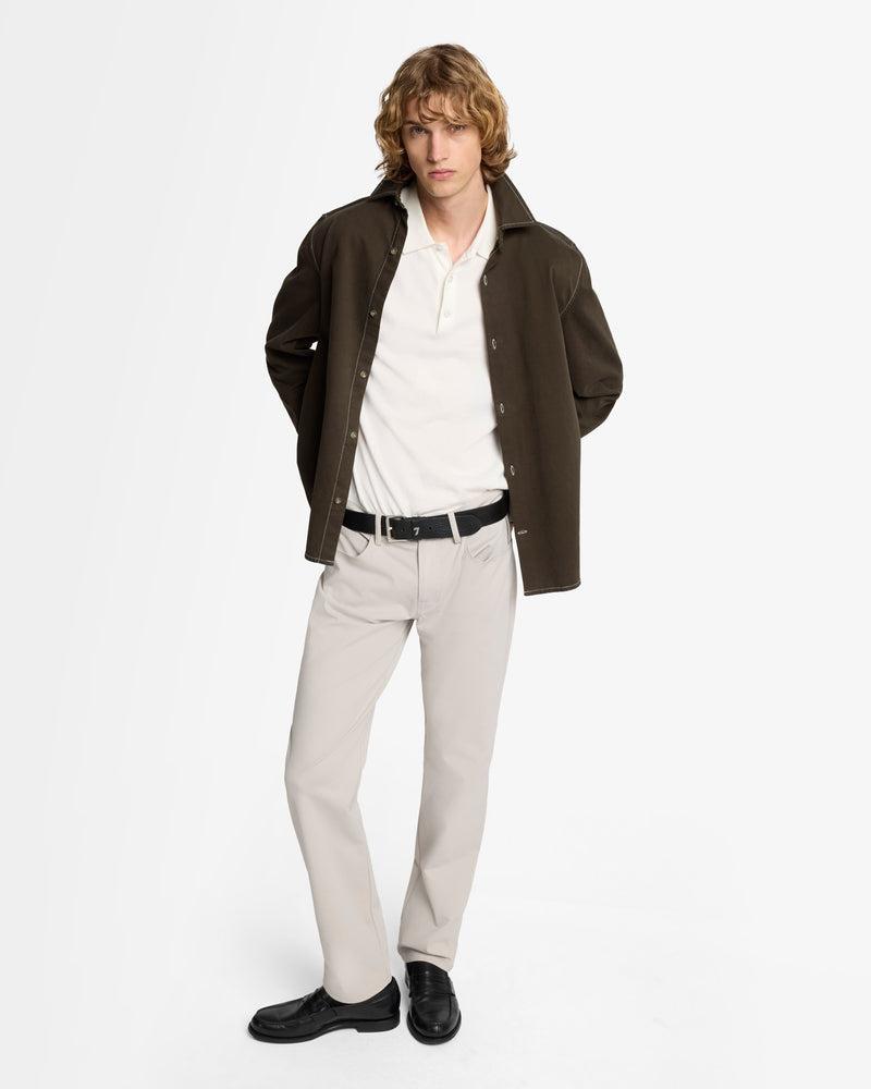Fits like: A straight, relaxed fit that runs parallel through the leg, hitting just below the waist for a modern yet classic shape. Feels like: Smooth, flexible comfort with just the right weight—easy to wear, easy to move in. The Details: Black wash Zip fly with button closure Clean back pocket Tonal stitching