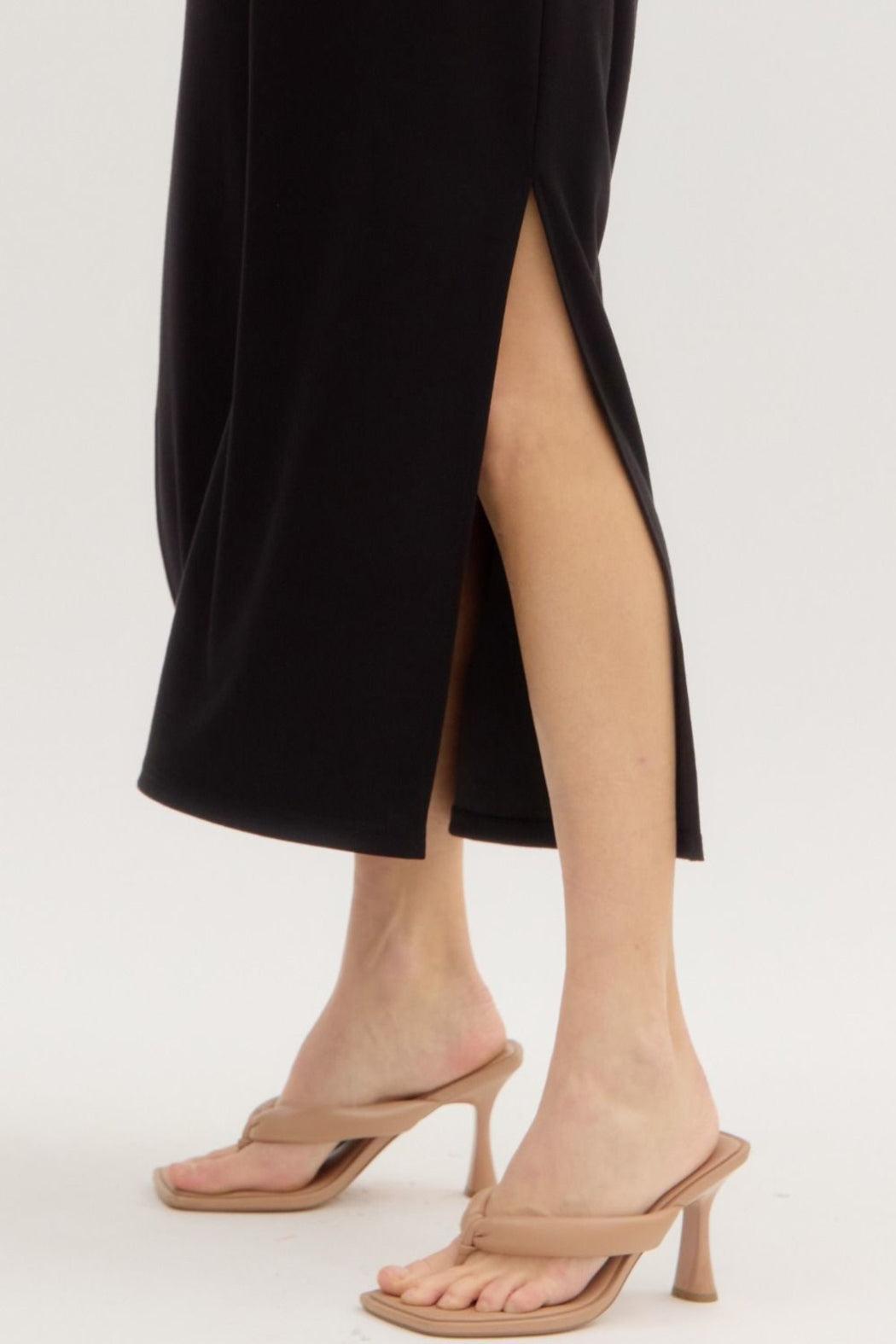 Elevate your everyday style with The Studio Edit, a minimalist jersey knit midi dress designed for modern ease and understated elegance. Crafted from a lightweight, non-sheer knit, this pullover dress features a sleek silhouette with a subtle side slit hem that adds just the right touch of movement. With a clean, unlined construction and functional side pockets, it’s the perfect fusion of form and function.