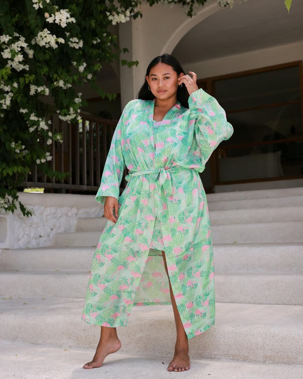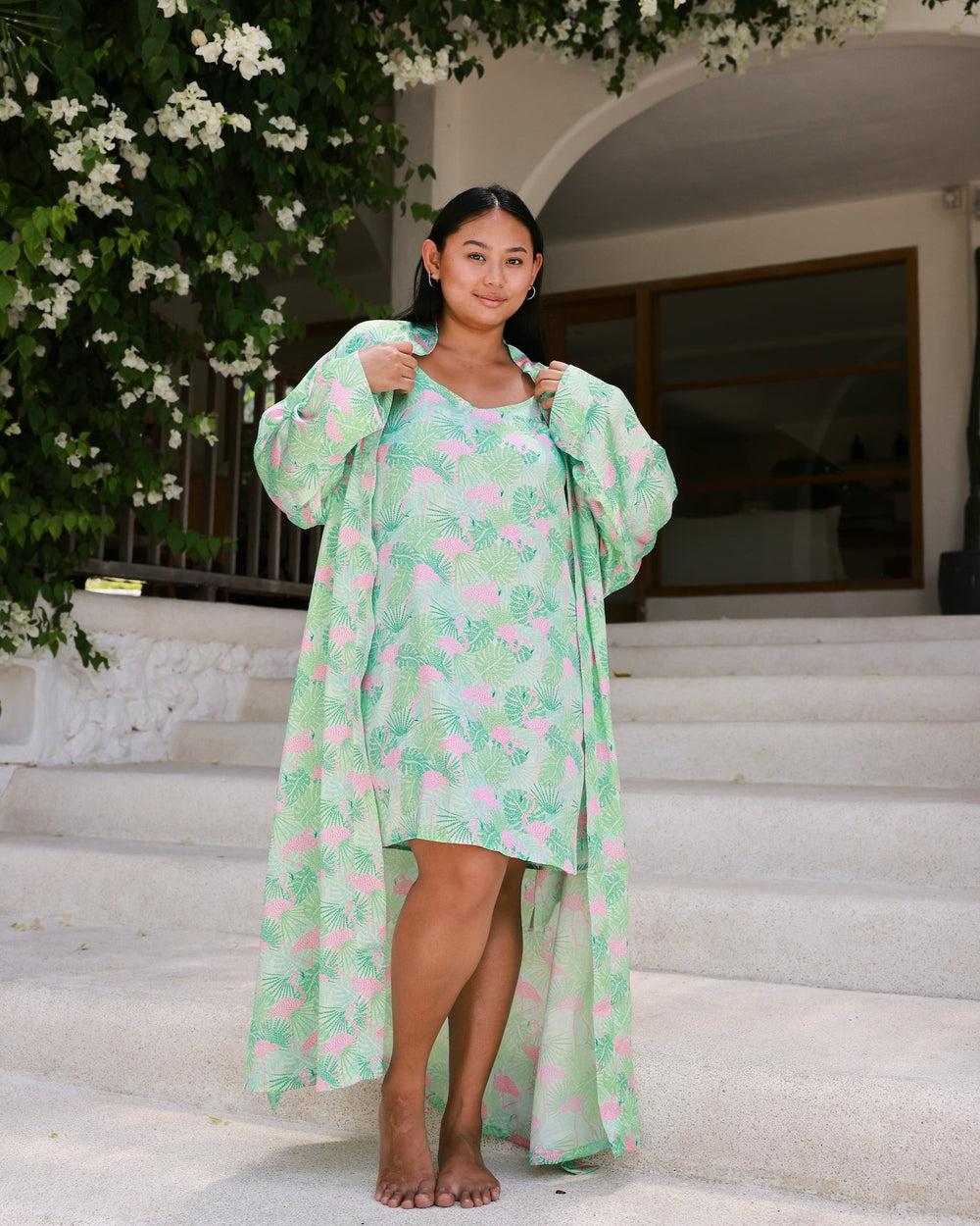Wear this silky smooth pajama robe as a part of our new luscious tropical nightie set and your vacation dreams might just come true…