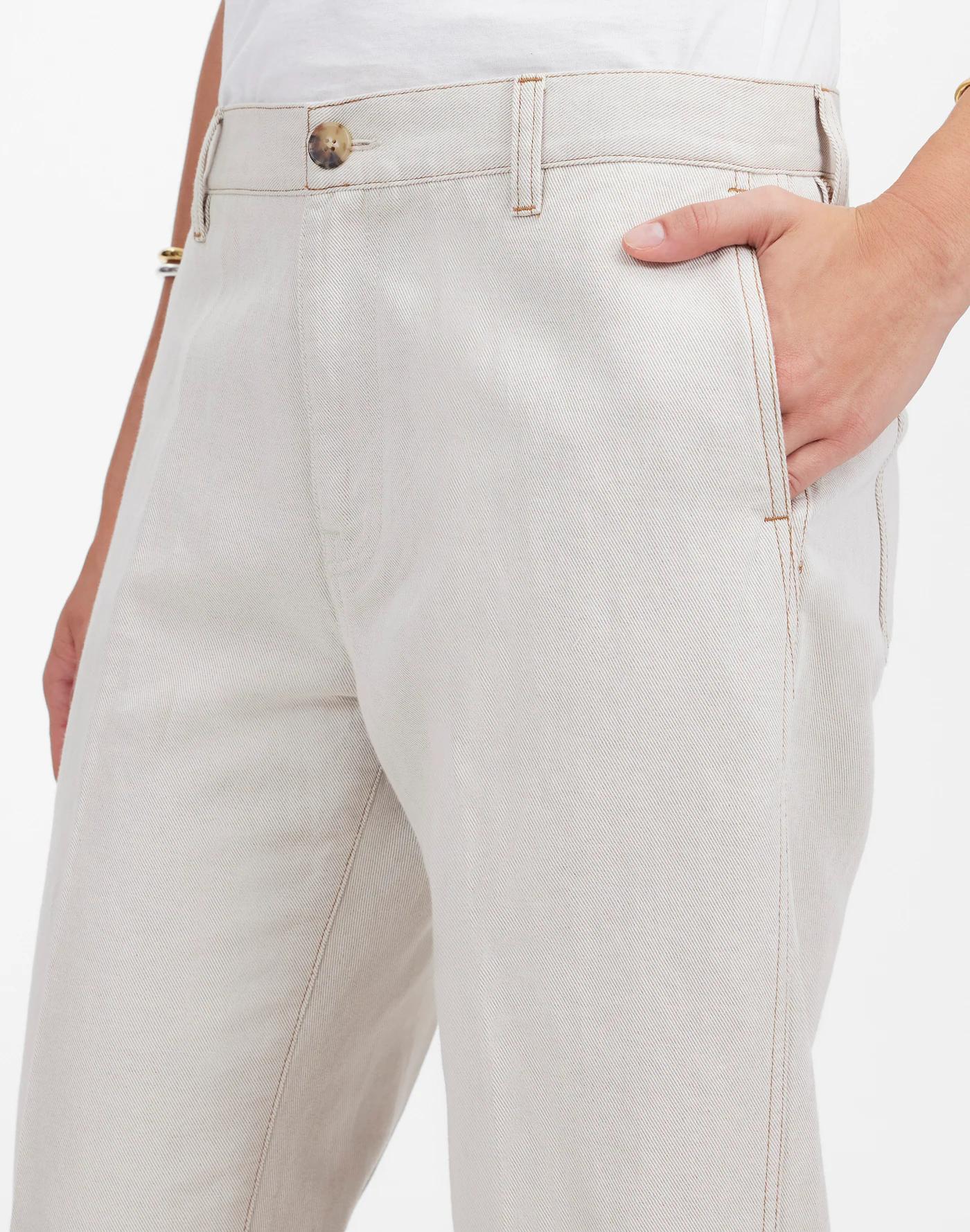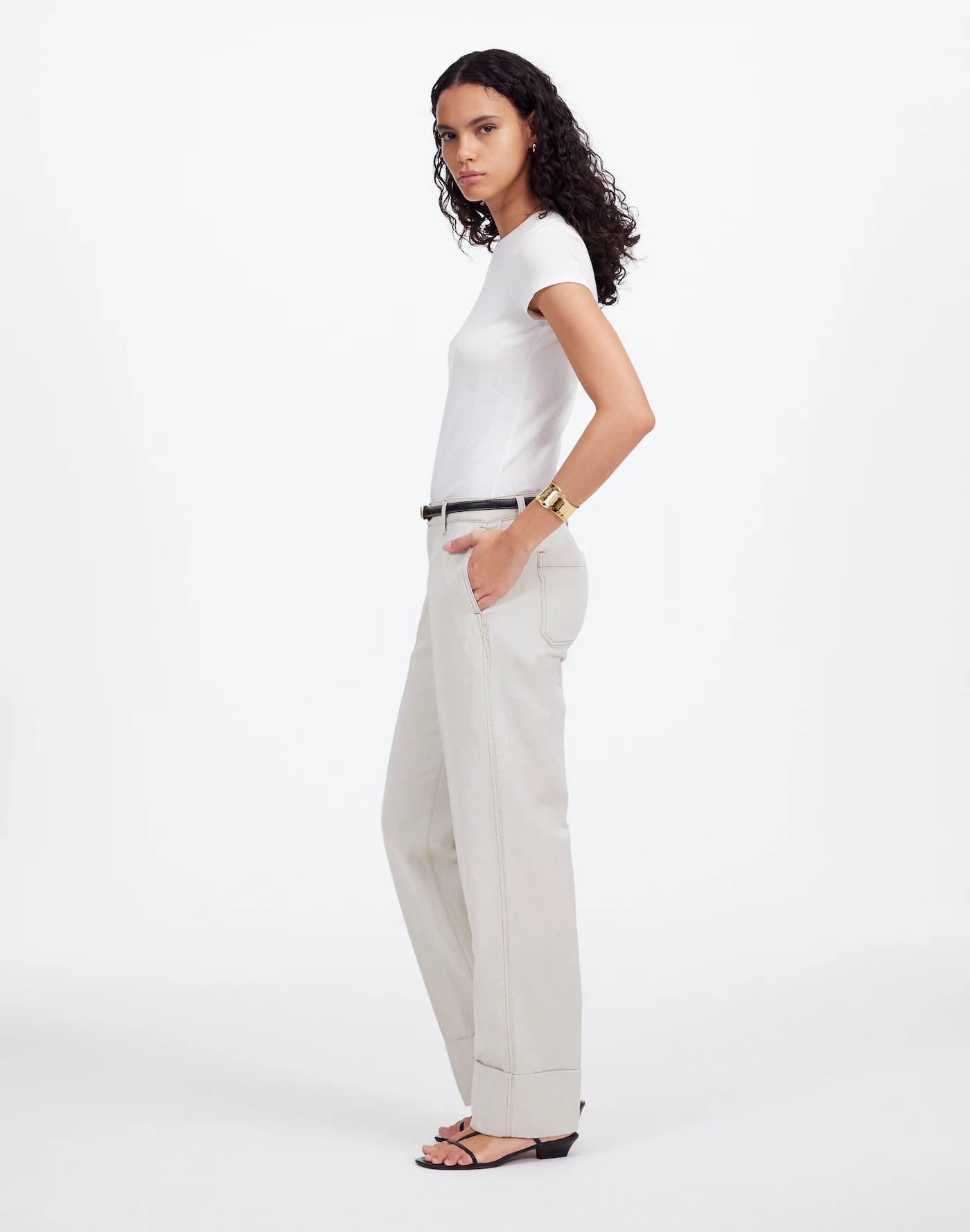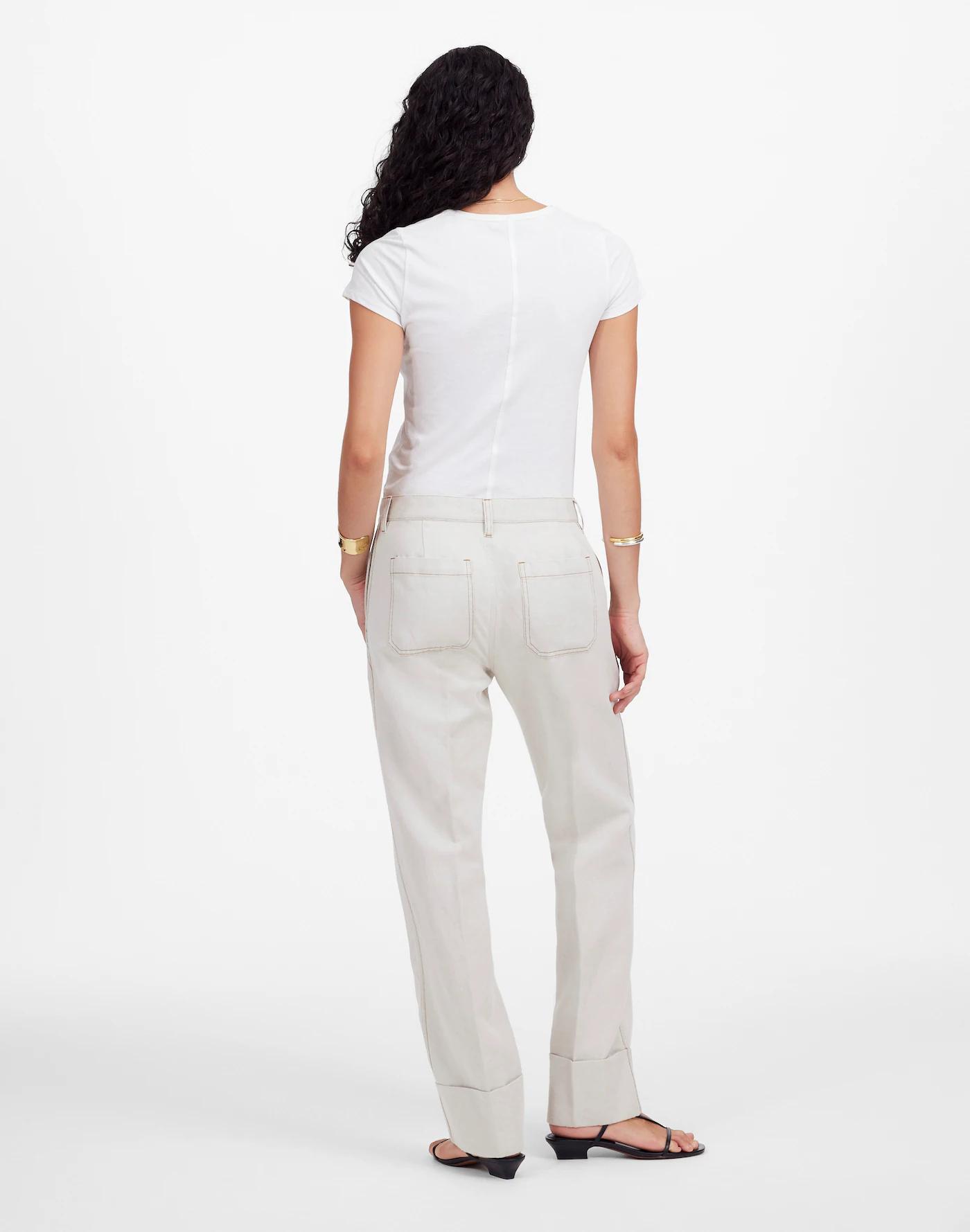 The cut: sits low on the hips with a relaxed straight leg and full-length inseam. This easy pant is crafted from a cotton-linen blend twill and features a cuffed hem.