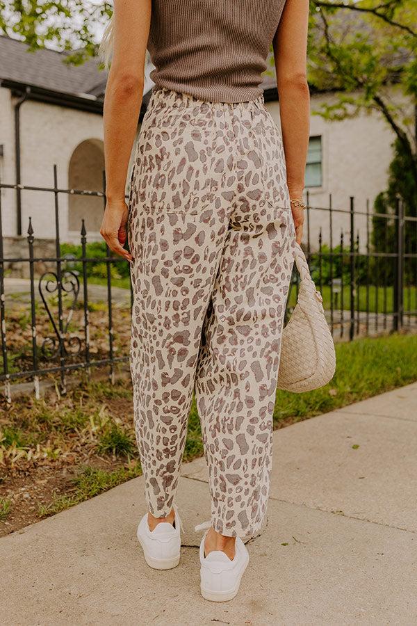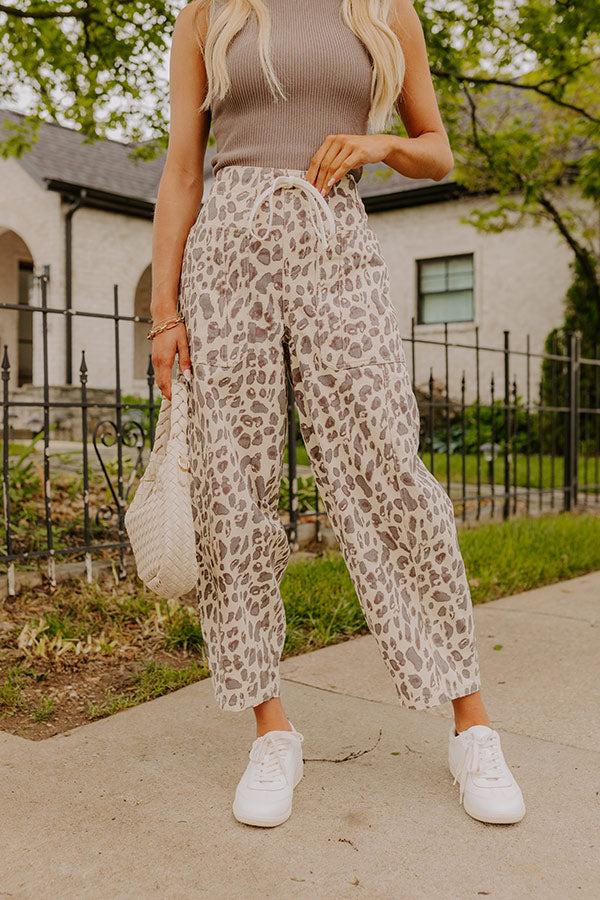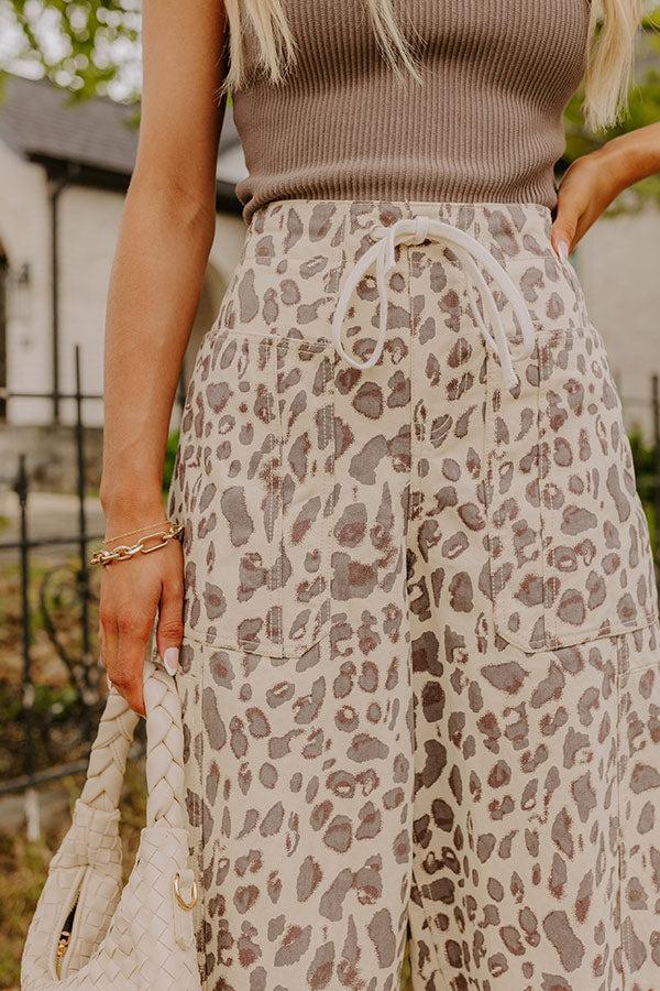 - Embrace an effortlessly cool vibe with these trendy leopard print pants! The drawstring waist and unique pockets keep it laid-back while updating your everyday style. - Unlined cream colored denim material with a dark grey and hazelnut colored leopard print - A waistline with a stretchy elastic back and a functional drawstring - A faux zip fly accent - Functional front, side, and back pockets - A wide leg silhouette that subtly tapers into straight hemlines Measurements S : Front Rise 13", Hip 38", Inseam 25.5", Length 36.5", Waist 30". M : Front Rise 13", Hip 40", Inseam 25.5", Length 36.5", Waist 32". L : Front Rise 13.5", Hip 42", Inseam 25.5", Length 36.5", Waist 34".
