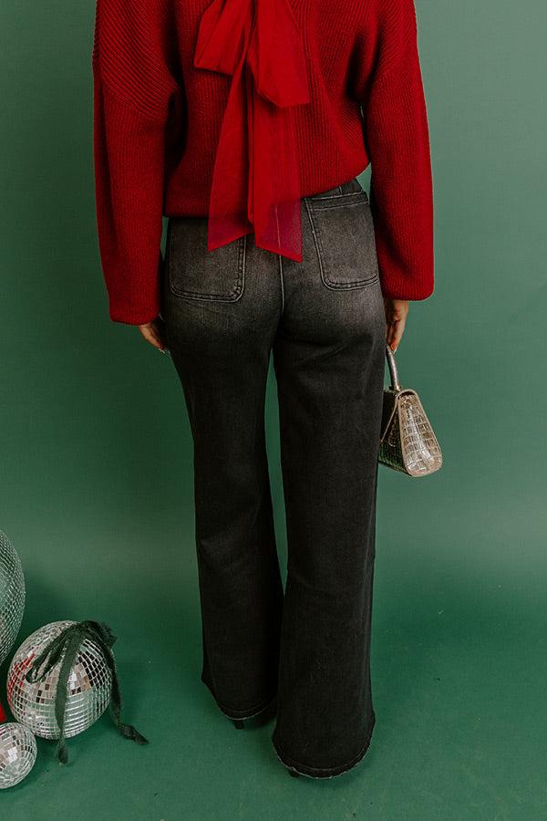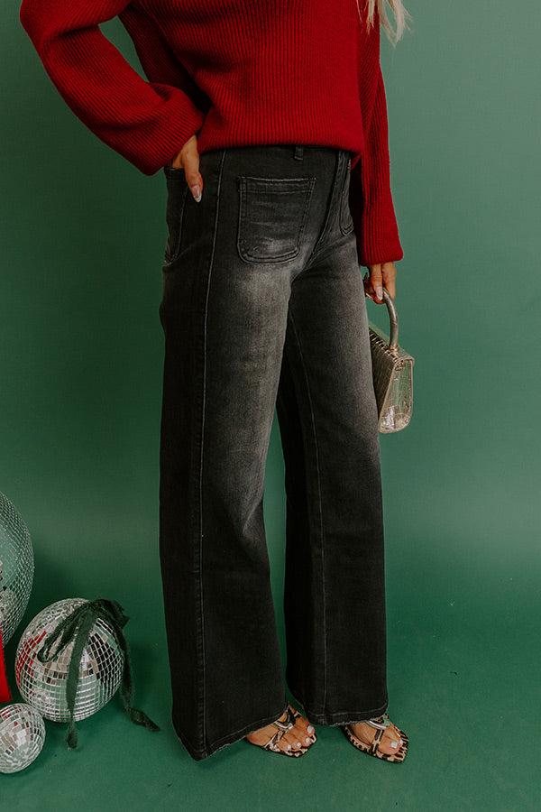- Give your denim lineup a trendy refresh with these flare leg jeans! They're the perfect way to bring casual chic into your everyday style. - Unlined semi-stretch denim material with subtle fading - A high waistline - Belt loops - A hidden zip fly and button closure - Functional front patch pockets as well as functional back pockets - A flare leg silhouette that ends in straight, subtly distressed hemlines