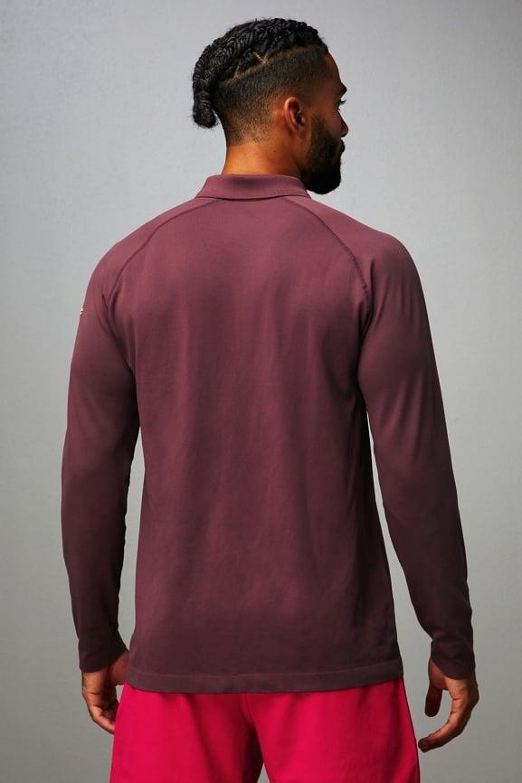 Not your basic long sleeve polo. Sweat-wicking fabric keeps you dry during your most intense workouts while its versatile slim fit and ribbed collar take the look to a whole new level.
