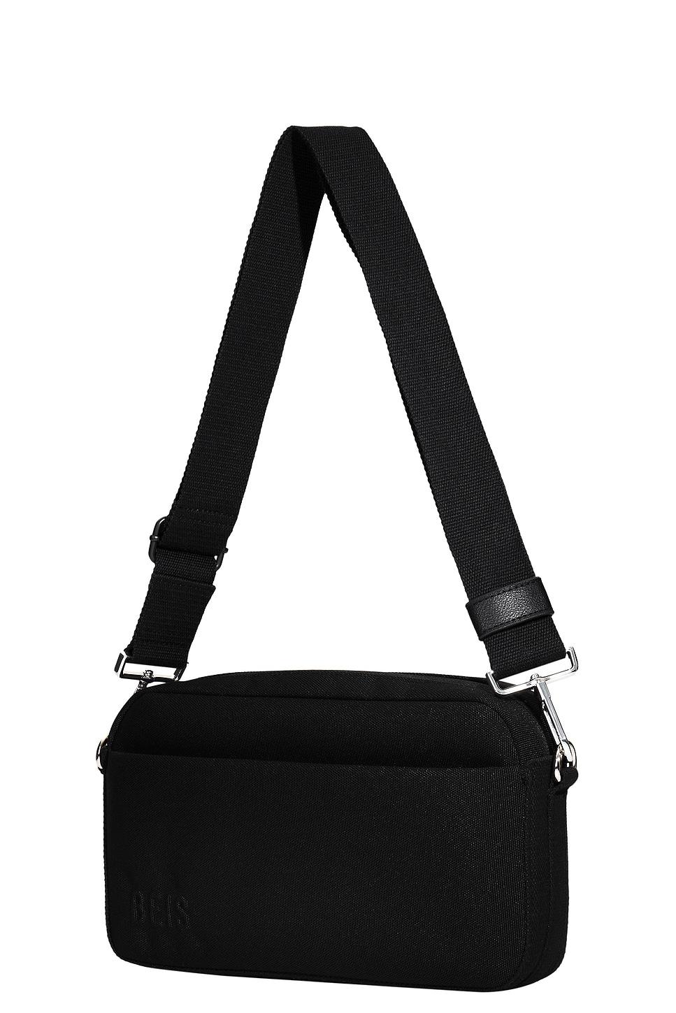 100% polyester. Top zipper closure. One main compartment. Interior zipper pocket and slip pocket. Elastic key leash inside front zip pocket. Front slip pocket and back zipper pocket. Detachable and adjustable shoulder strap. Measures approx 10.25" W x 5.9" H x 1.96" D. This item is not available for international export. Made in China. Revolve Style No. BEIS-WY409. Manufacturer Style No. BEIS139501.