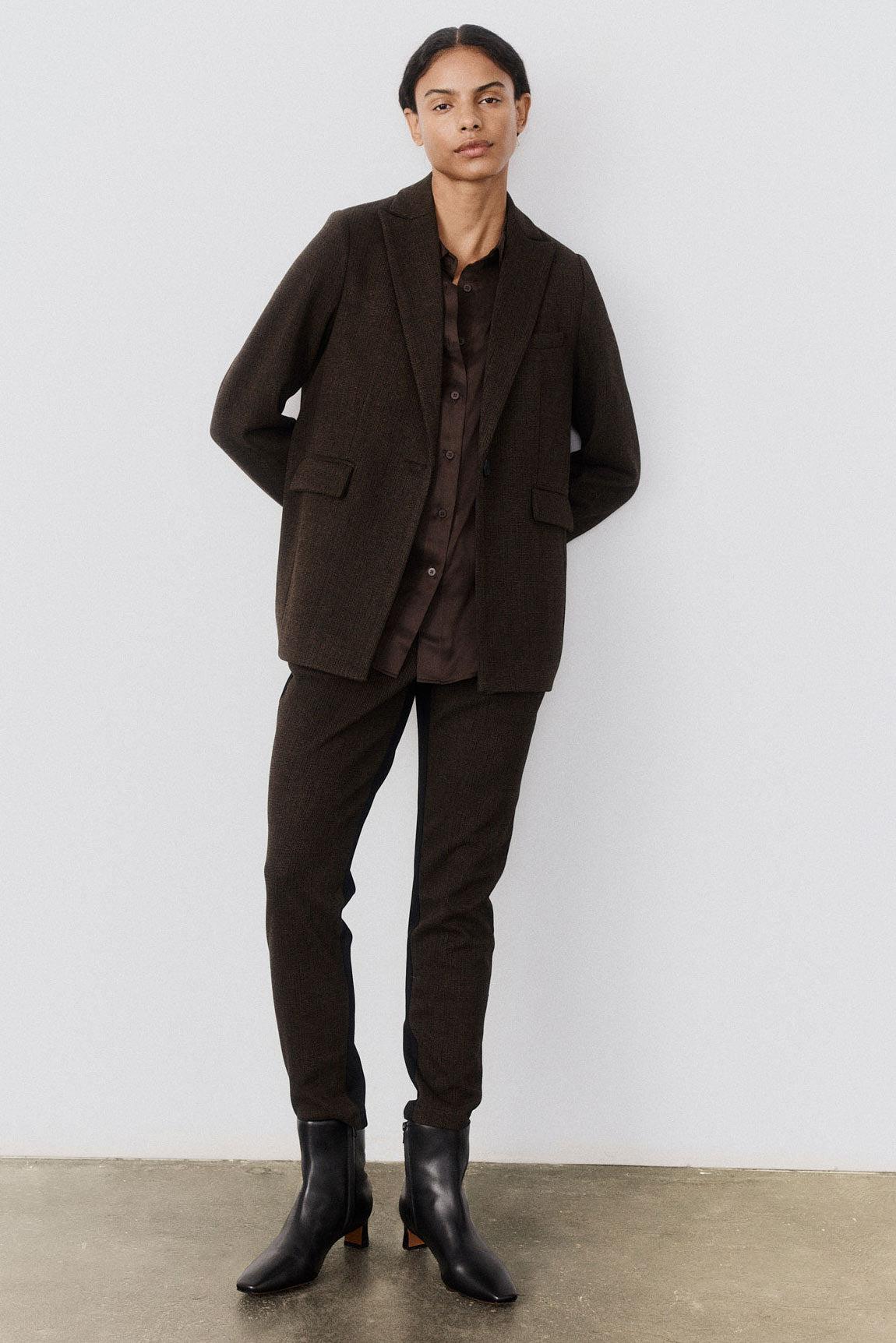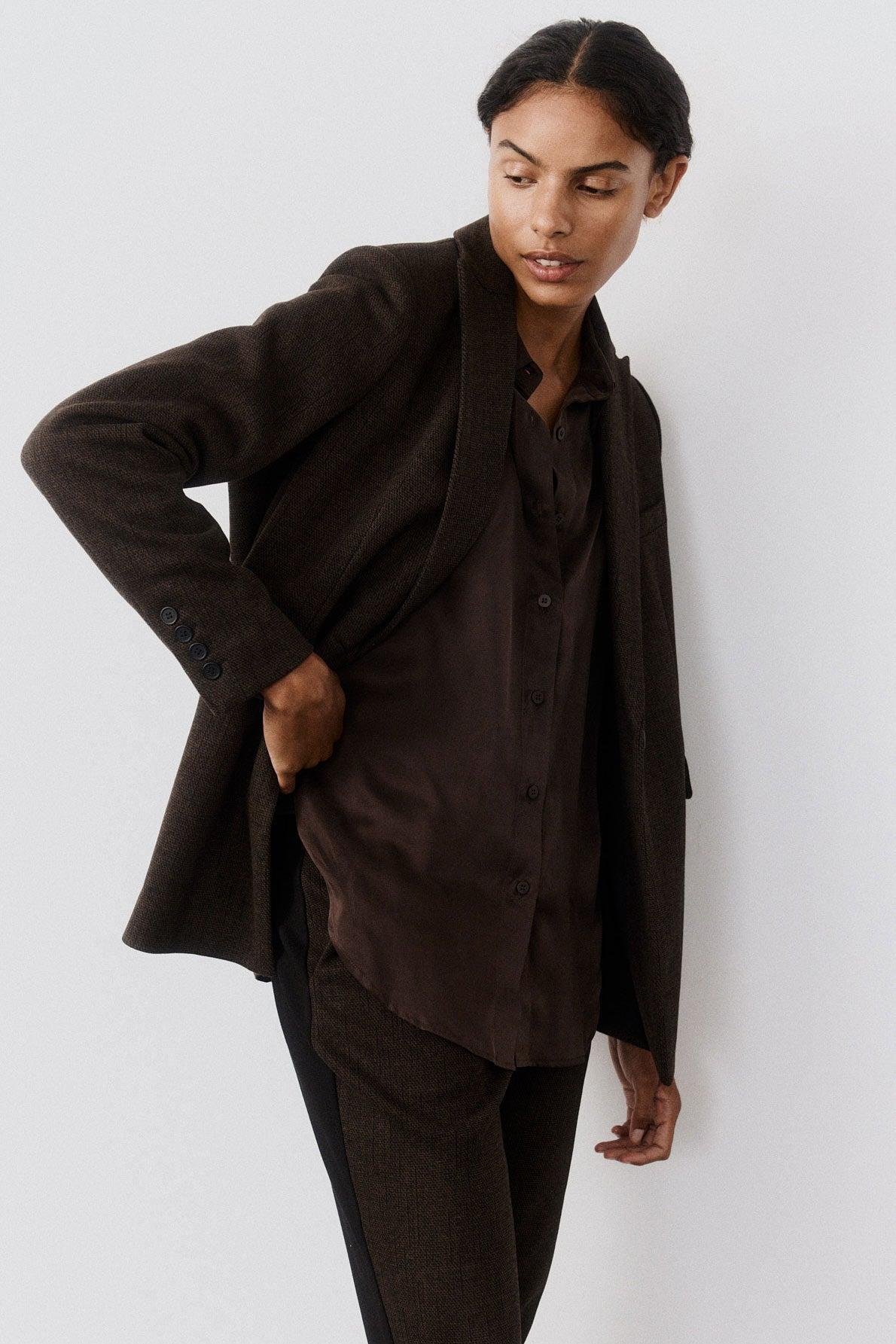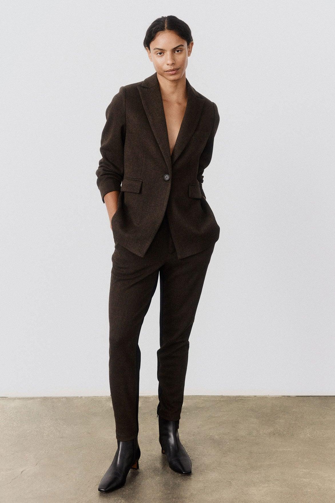 This lightweight and breezy blazer offers a luxurious feel and drapes beautifully on your frame, providing both comfort and style in one stunning package. Pair it with The Tweed Comfort Trouser for a polished and professional ensemble.