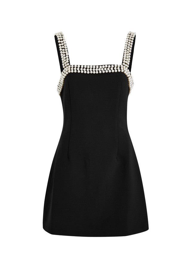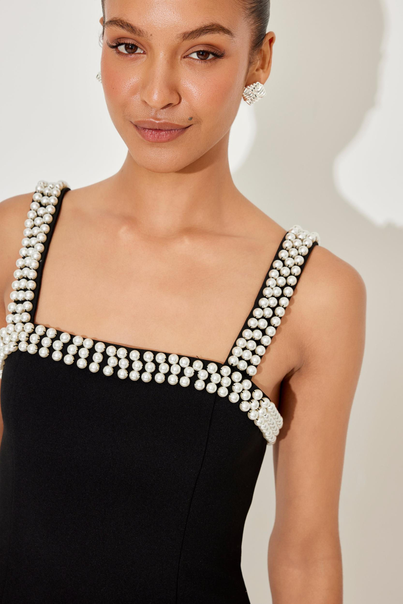 The iconic pearls you know and love, re-imagined. The ultimate evolution of our best-selling, black pearl dress. Cut from our signature fabric, this mini dress features pearl-lined straps, a discreet zipper at the back and tailored to accentuate your figure.