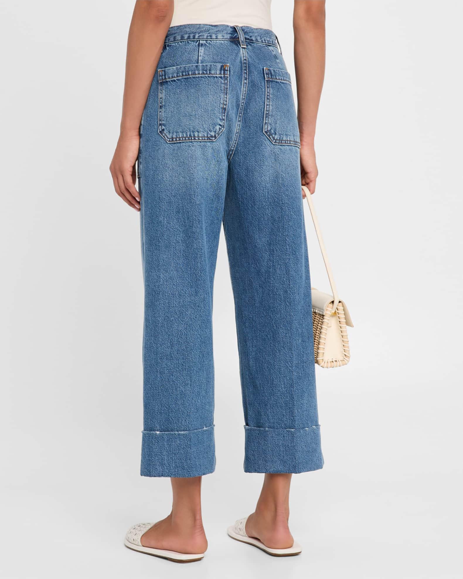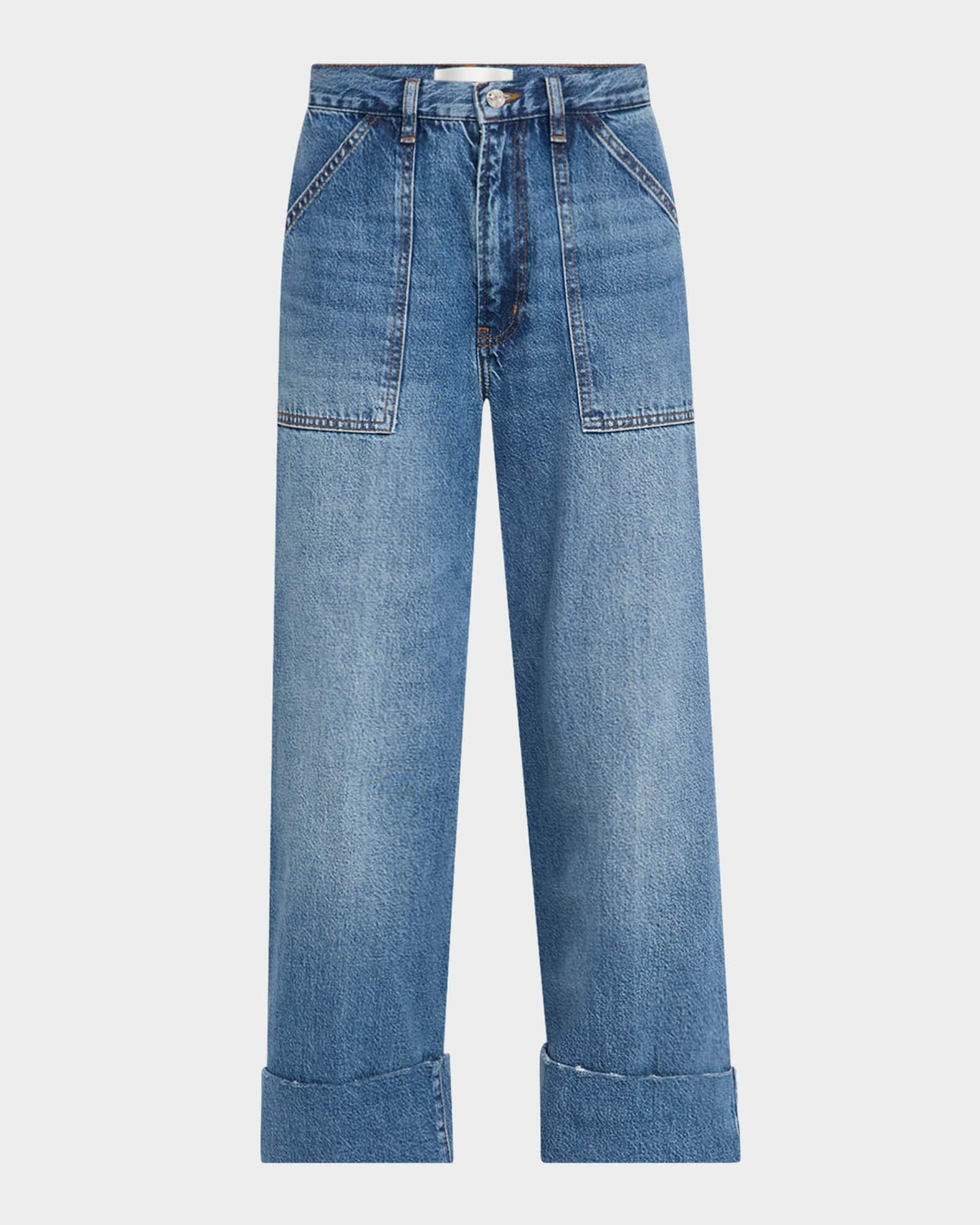 FRAME "The Utility" trouser jeans finished with a cuffed hem Approx. 11.5" rise; 27.5" inseam High rise Front and back patch pockets Wide legs Ankle length Button/zip fly; belt loops Organic cotton/lyocell Machine wash cold inside out Imported