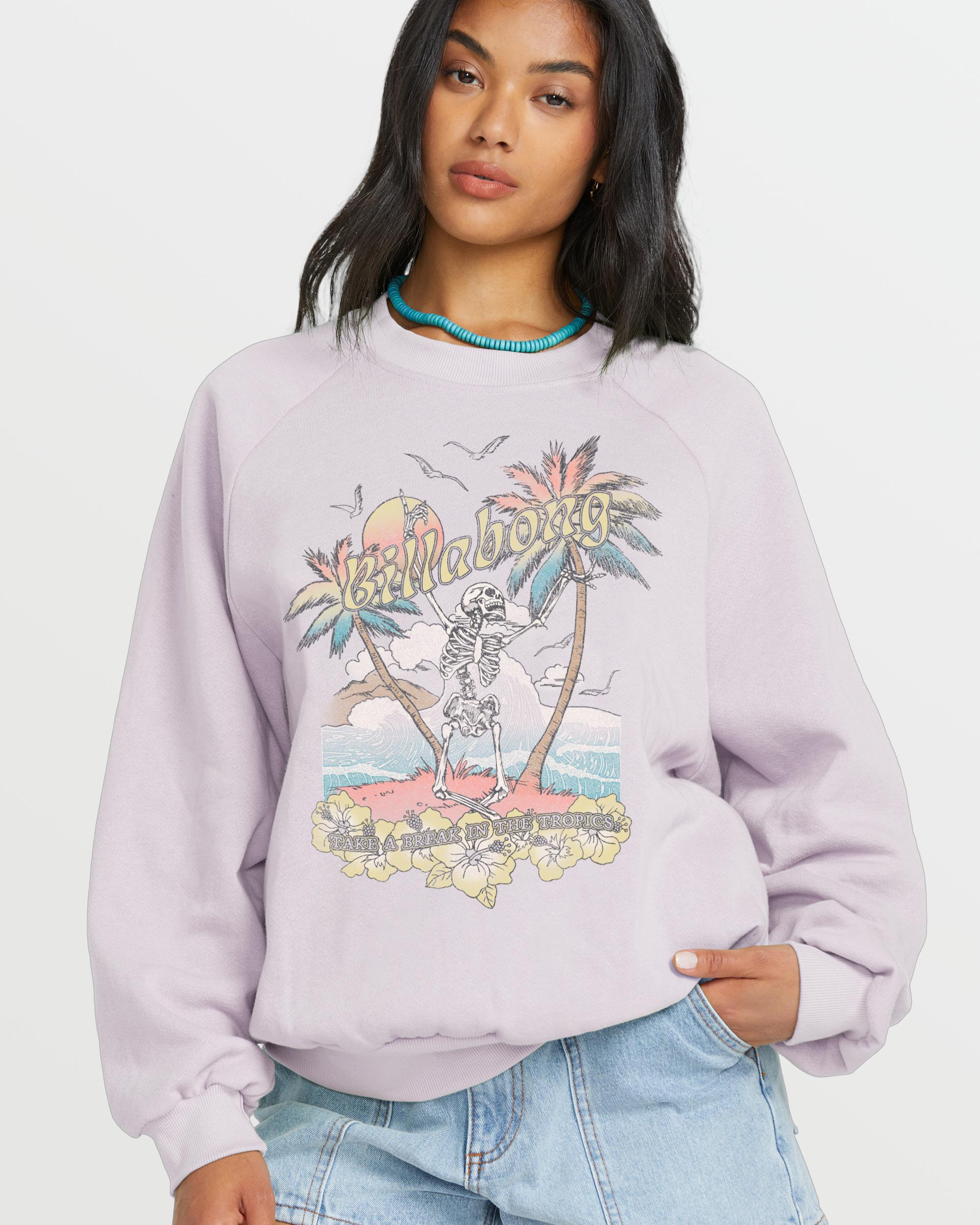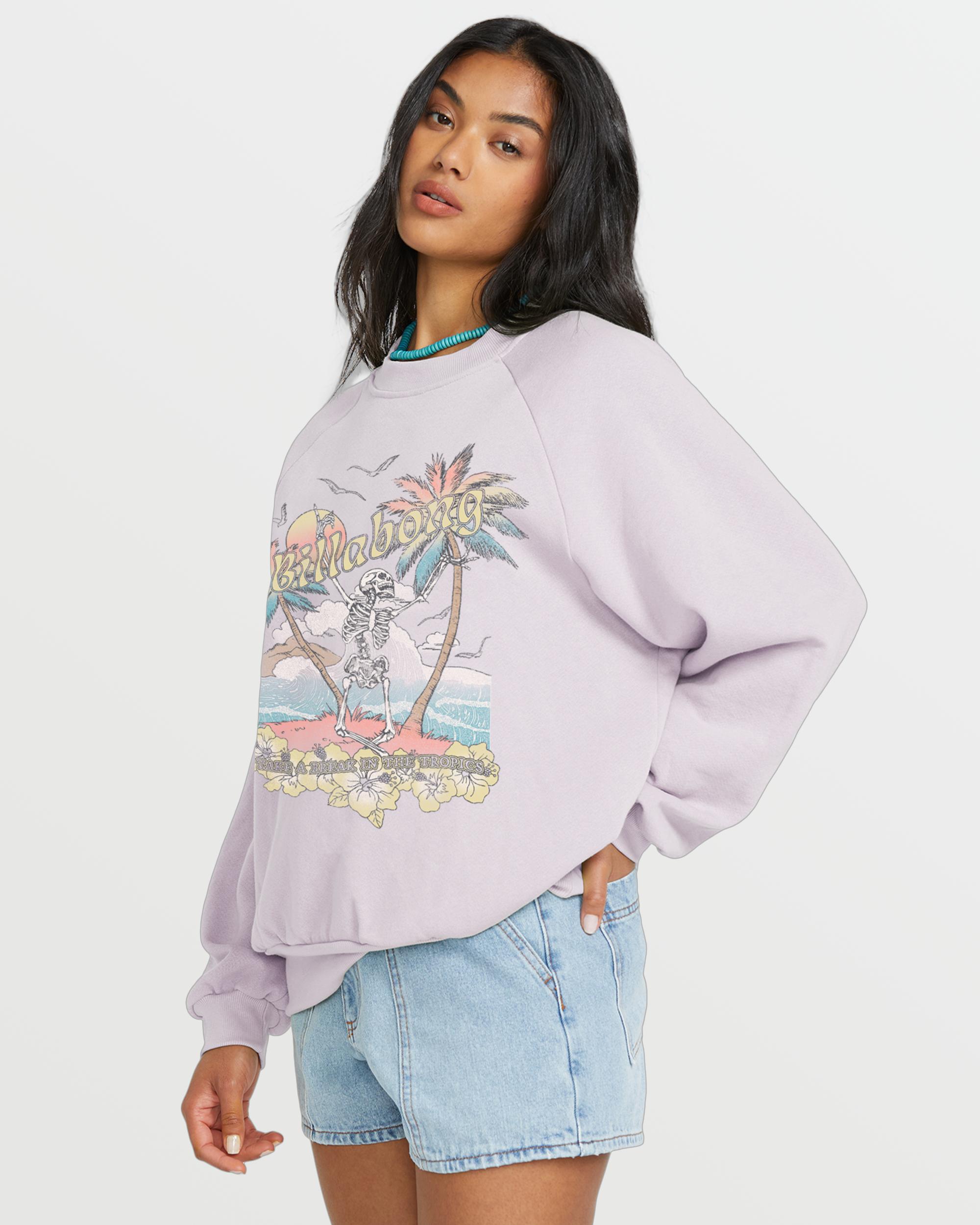 Effortlessly stylish, this pigment-dyed pullover sweatshirt flaunts a custom waved screen print and metal plate detail. Crafted from a plush cotton-poly fleece blend in an oversized fit, it channels laid-back, beach-loving vibes. Your new cozy go-to for lounging or laid-back hangs. Featured here in the Amethyst Smoke colorway. Features Pullover Sweatshirt 80% Cotton 20% Polyester Fleece, Pigment dyed Oversized fit Puff ink screen print Metal plate