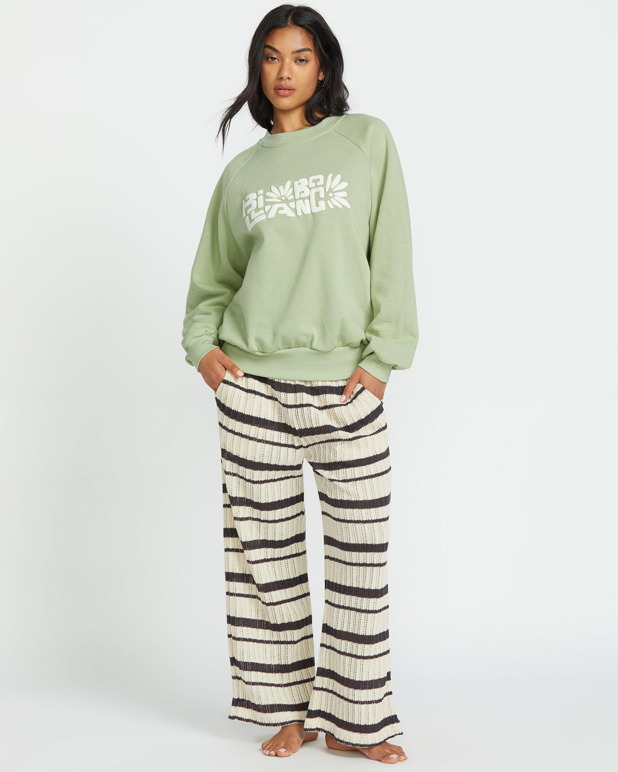 Effortlessly stylish, this pigment-dyed pullover sweatshirt flaunts a custom waved screen print and metal plate detail. Crafted from a plush cotton-poly fleece blend in an oversized fit, it channels laid-back, beach-loving vibes. Your new cozy go-to for lounging or laid-back hangs. Featured here in the Pistachio colorway. Features Pullover Sweatshirt 80% Cotton 20% Polyester Fleece, Pigment dyed Oversized fit Puff ink screen print Metal plate