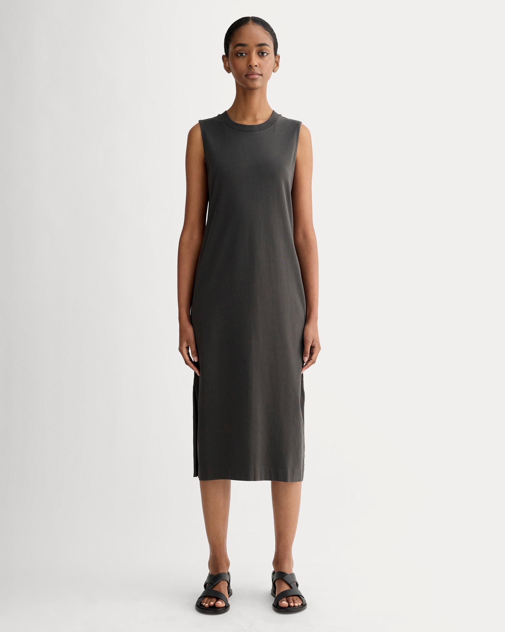 The go-to dress youll want to wear all weekendnow in certified organic cotton. Made of lightweight cotton with a soft lived-in feel The Weekend Tank Dress is like your favorite vintage teein dress form. Complete with a classic crew neckline and a relaxed fit throughout its an easy pick for warm-weather days. Trust usyour weekend wont know what hit it. Womens Weekend Tank Dress by Everlane in Washed Black, Size XXL