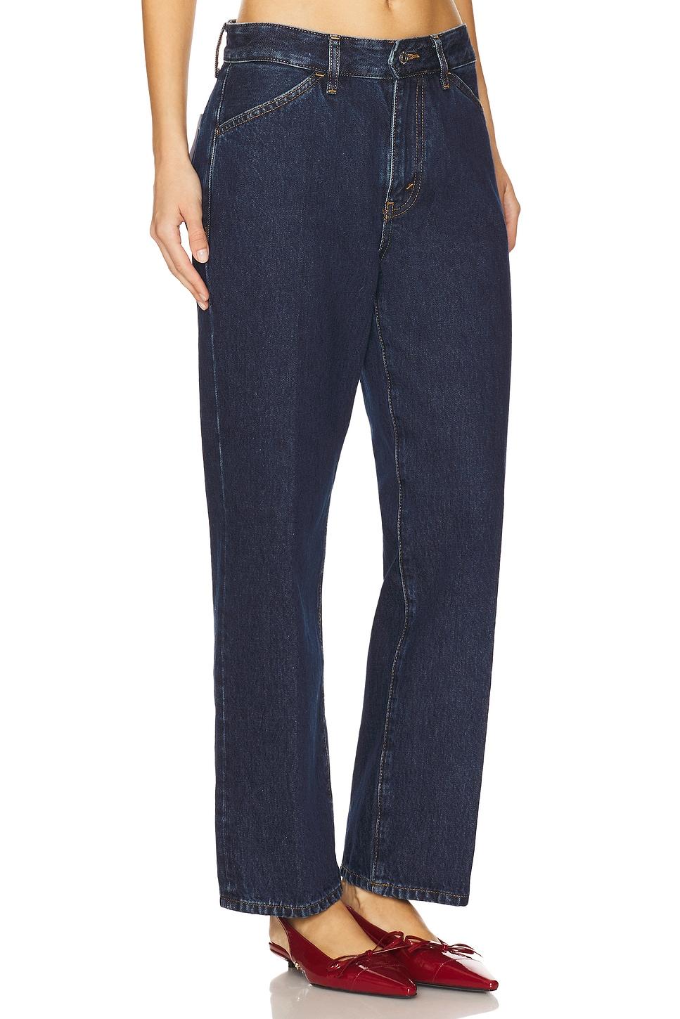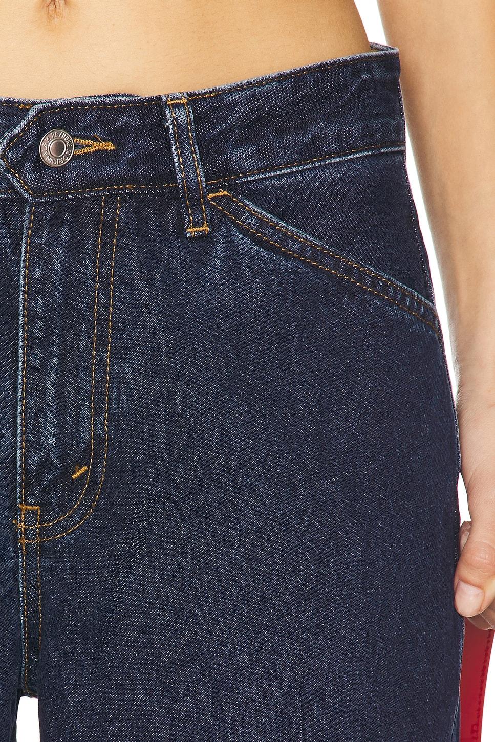 Self: 100% organic cottonLining: 65% polyester, 35% cotton. Machine wash cold. Zip fly and button closure. 2 side slant pockets and 2 back welt pockets. Midweight rigid denim fabric. Each Re/Done style is unique. Due to the use of reclaimed vintage fabrics, details and colors vary throughout to ensure that each piece is uniquely its own.. 18" at the knee narrows to 17" at the leg opening. Made in Turkey. Revolve Style No. REDR-WJ351. Manufacturer Style No. 141-03WWESTLY.