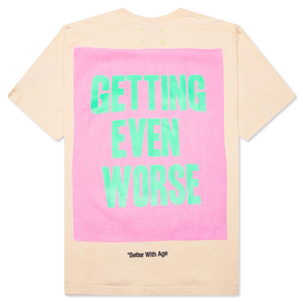 The Better With Age The Worst Tee is a standout piece that embodies the brand's dedication to sustainability and individuality. Each tee is crafted from authentic vintage t-shirts giving each piece a one-of-one feel. Given the vintage aspect, each piece carries its own history while being revived into a new look. With a classic crew neckline, hand stitching, patchwork, embroidery, or printed graphics cover the tee. This garment may display stains, blemishes, wear, or general signs of age adding to its unique charm. BUYER WILL RECEIVE A ONE-OF-ONE VINTAGE T-SHIRT IN A RANDOMLY SELECTED COLOR. PRODUCT IMAGES SHOWN ARE EXAMPLES AND MAY NOT REFLECT THE EXACT ITEM RECEIVED.ALL SALES ARE FINAL. Fabric type varies One-of-one design Classic crew neck Loose fit Hand stitching, patchwork, embroidery, garment dyed or printed graphics May show signs of wear, blemishes, or age Style No: BWATSWOR-MUL