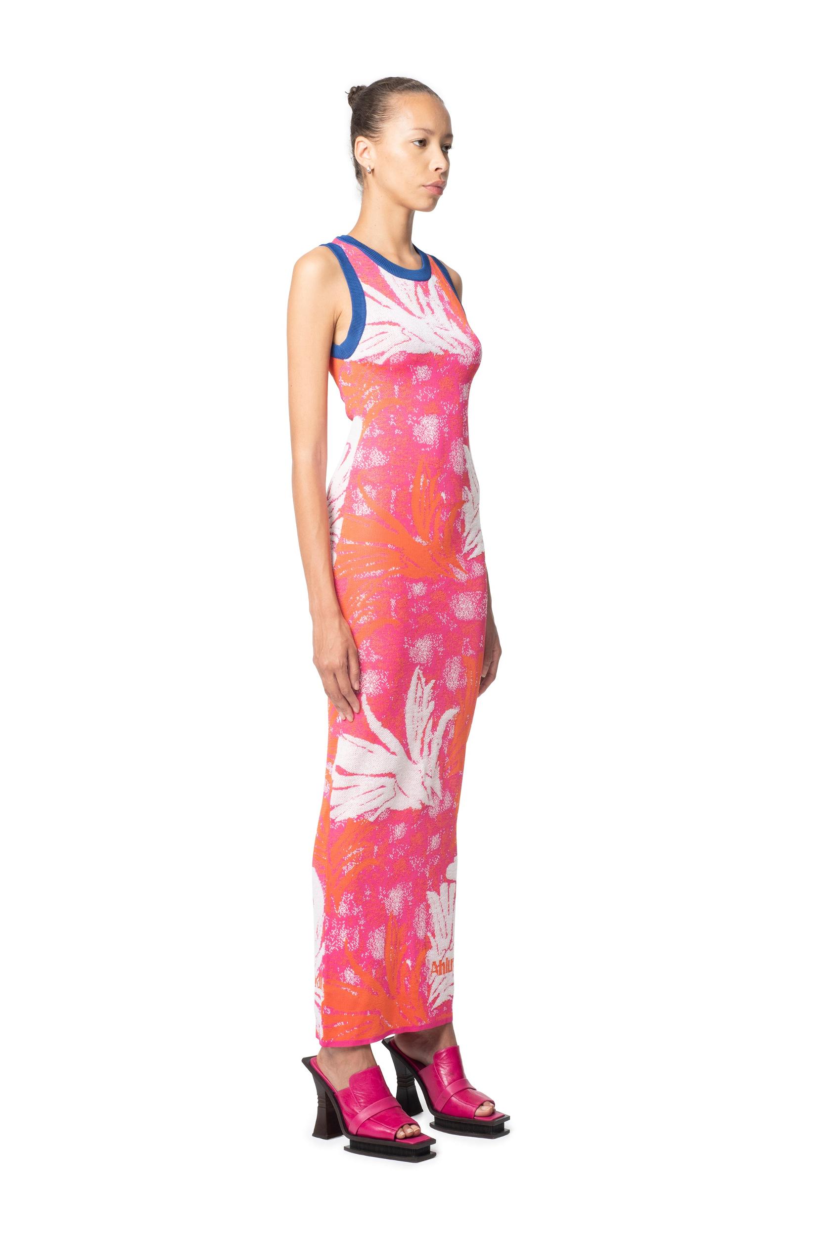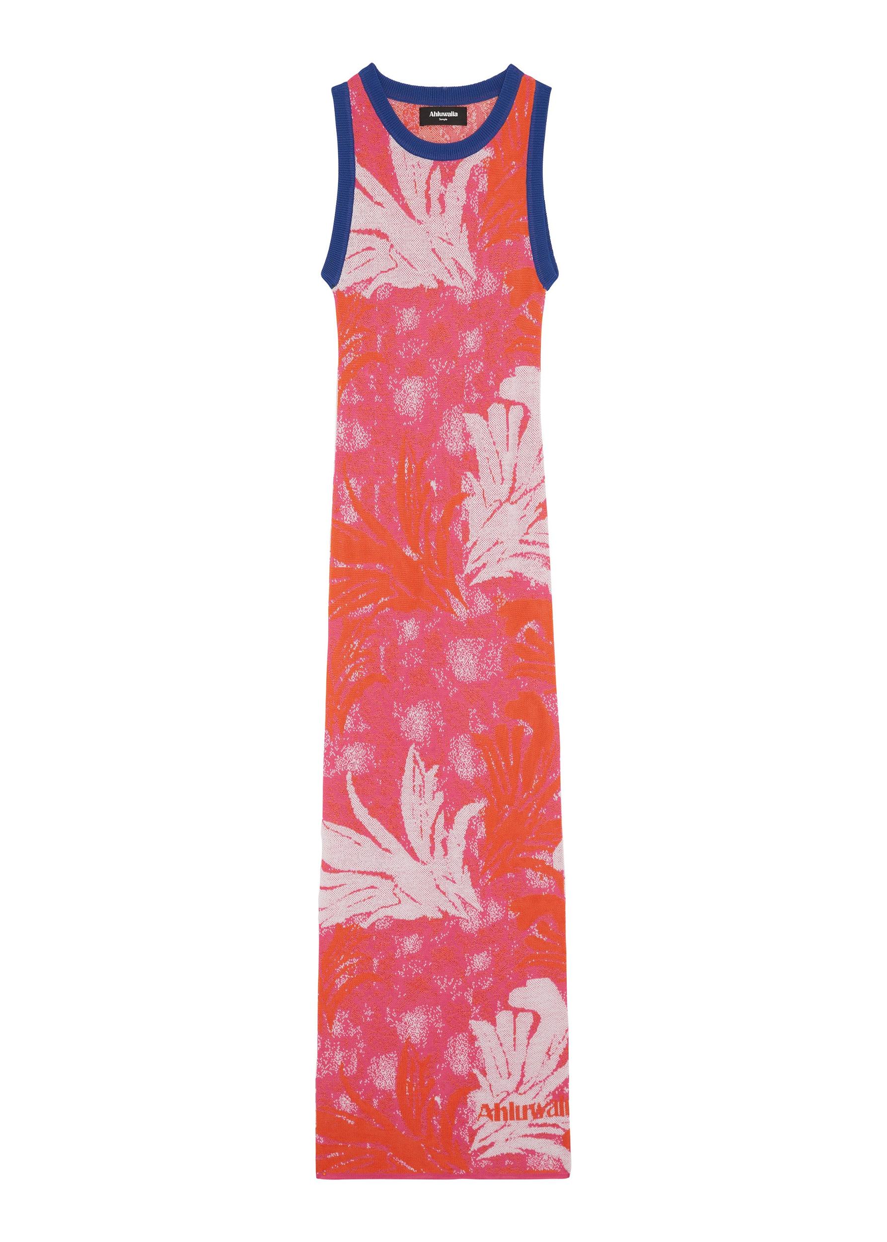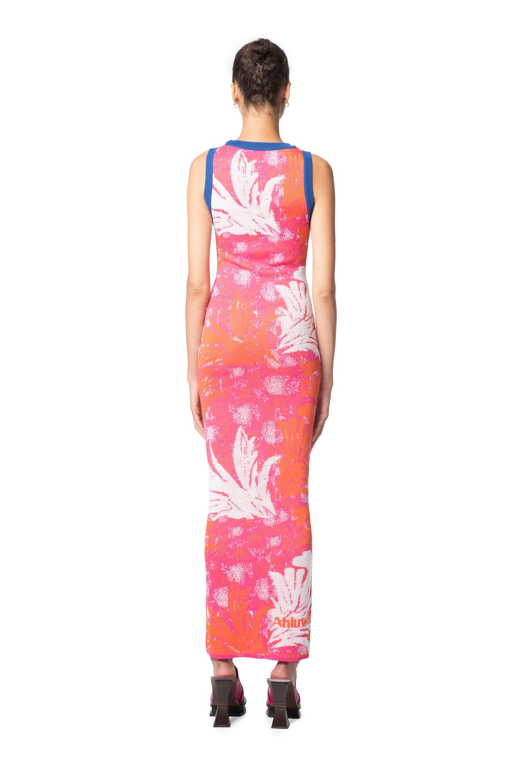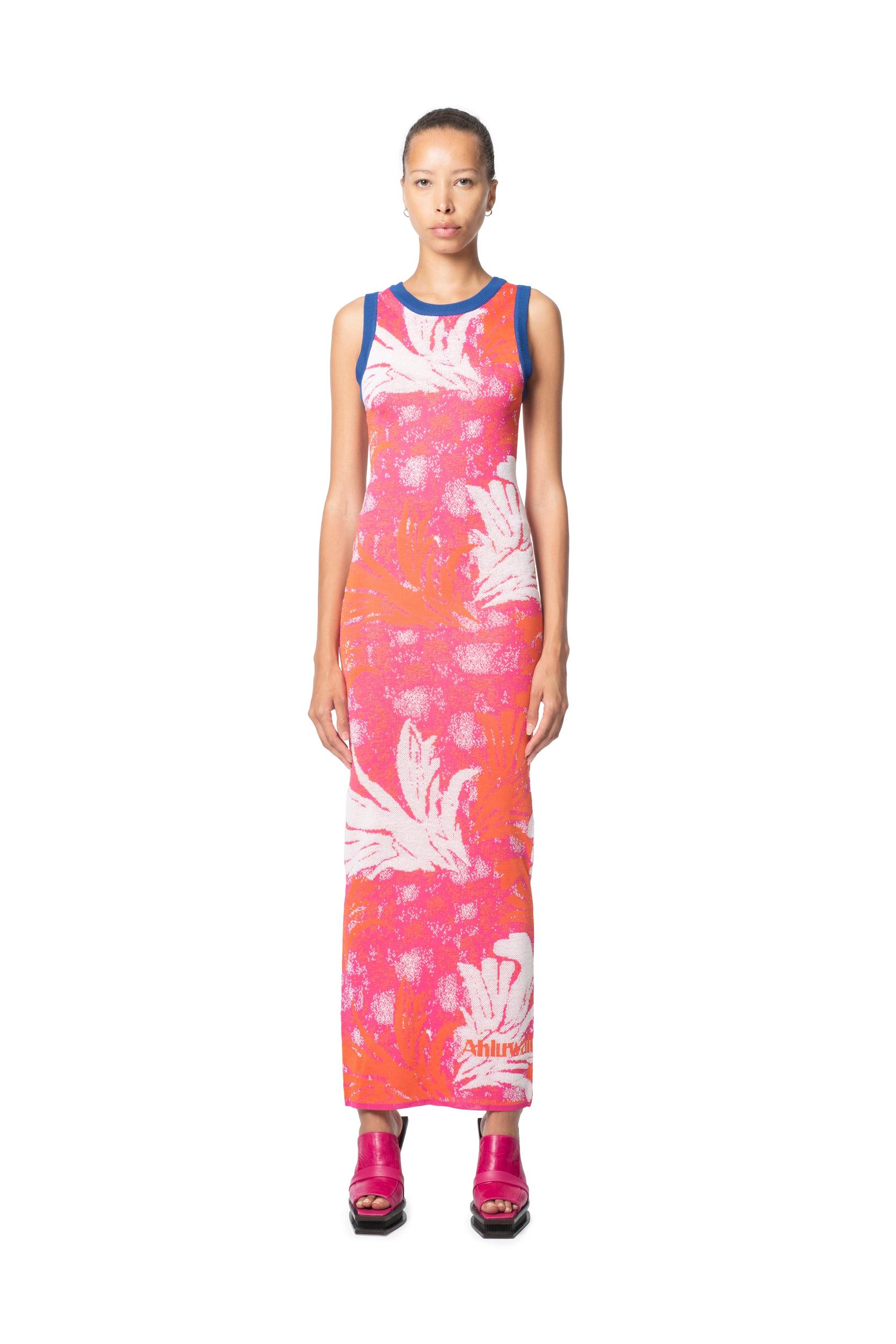 Description: The Thea knitted dress features floral motifs layered with a gradient speckle effect, knitted with Ecovero viscose yarns. Within these motifs, the name 'Ahluwalia' is layered, adding a sense of depth and movement to the design. Sizing: Click here for size guide. For further sizing assistance please contact us on