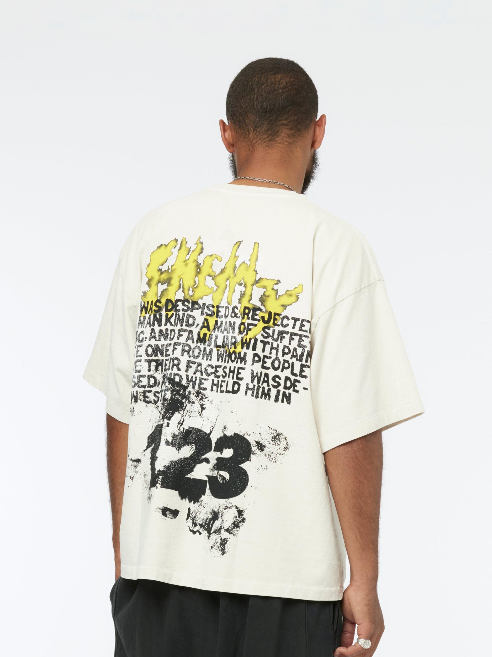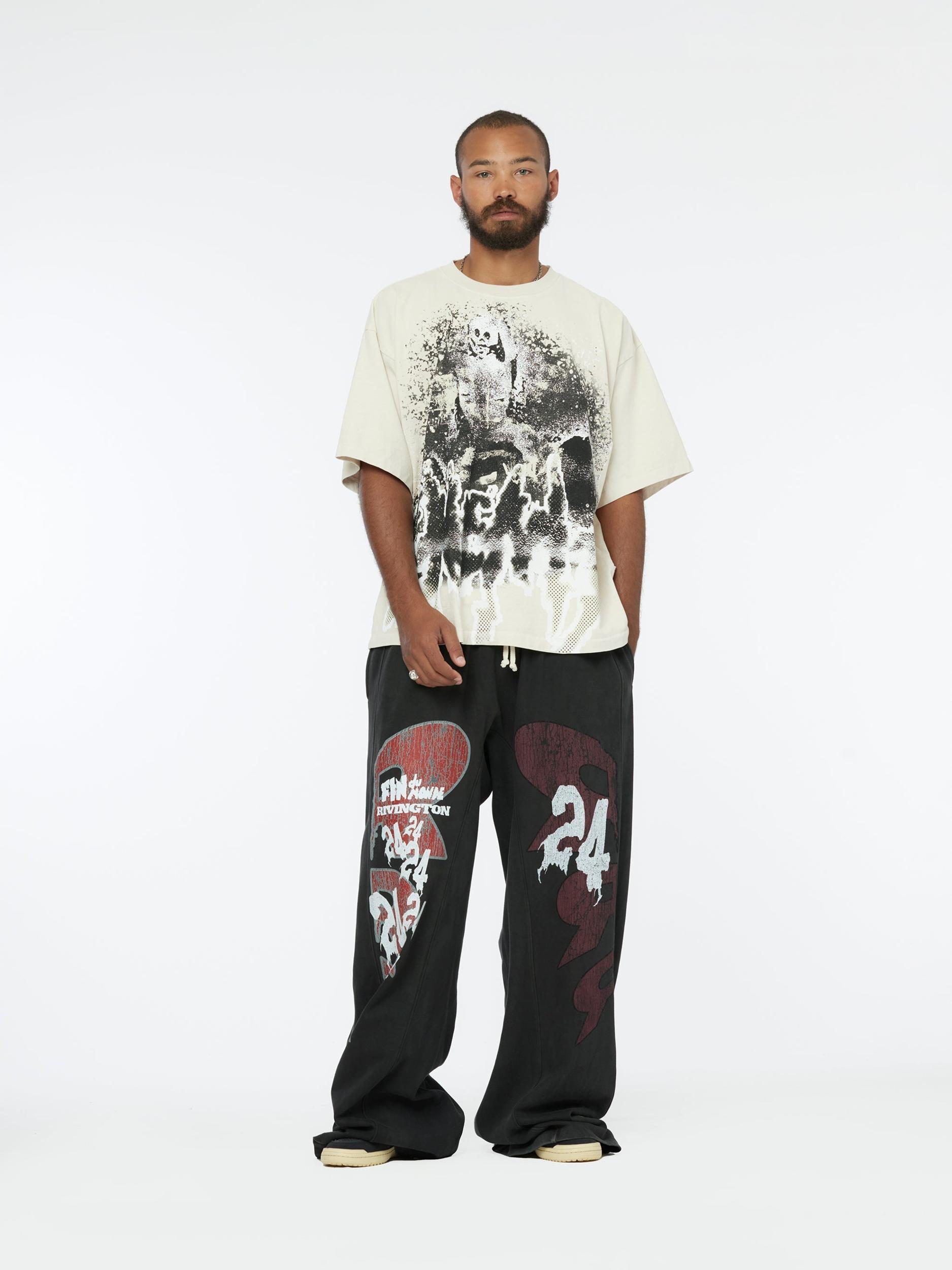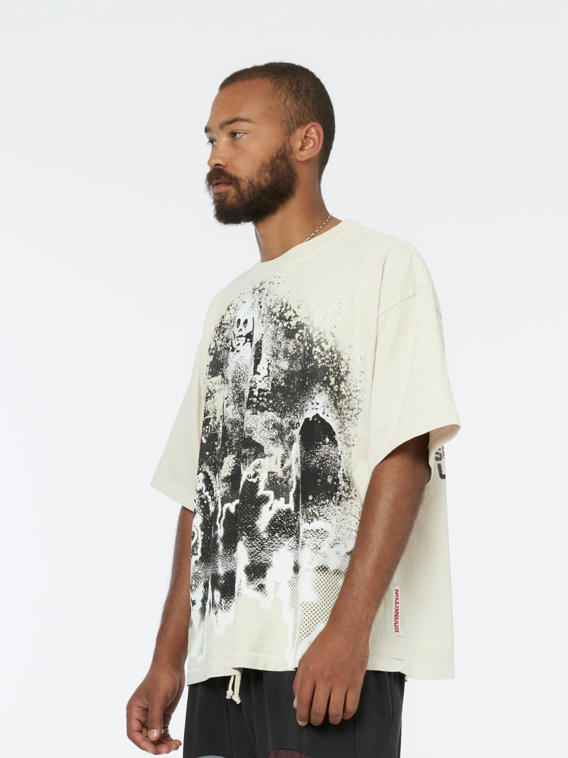 - MEDIUM WEIGHT JERSEY- ACRYLIC SCREEN PRINT- 100 COTTON- MADE IN LOS ANGELES EACH HANDMADE ITEM CARRIES WITH IT A CHARACTER OF ITS OWN. ALLOW FOR THE INDIVIDUALITY OF YOUR PIECE TO BE A VIRTUE, NOT A FLAW. ALL COLOR FADES, TEARS, RIPS, DISCOLORATION, DISTRESSING OF FABRICS AND CONSTRUCTION ARE INTENTIONAL.