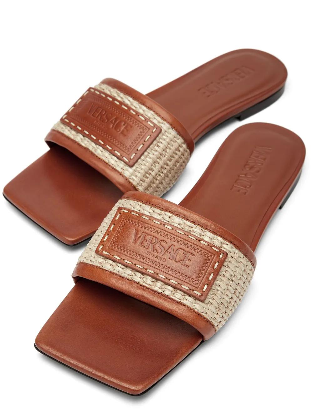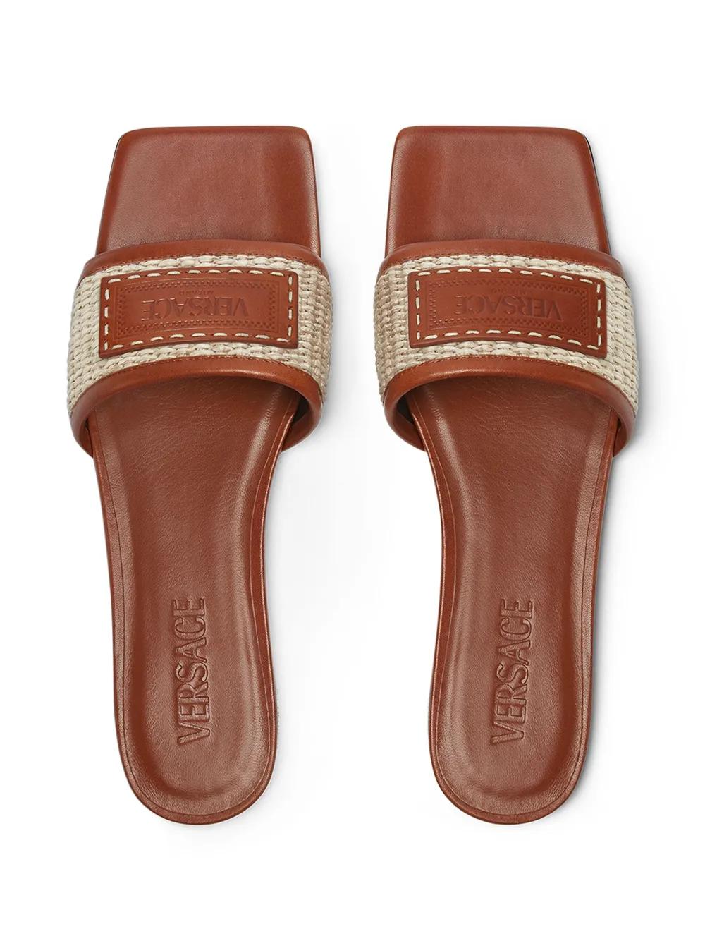 Shop Versace Theia Barocco raffia slides