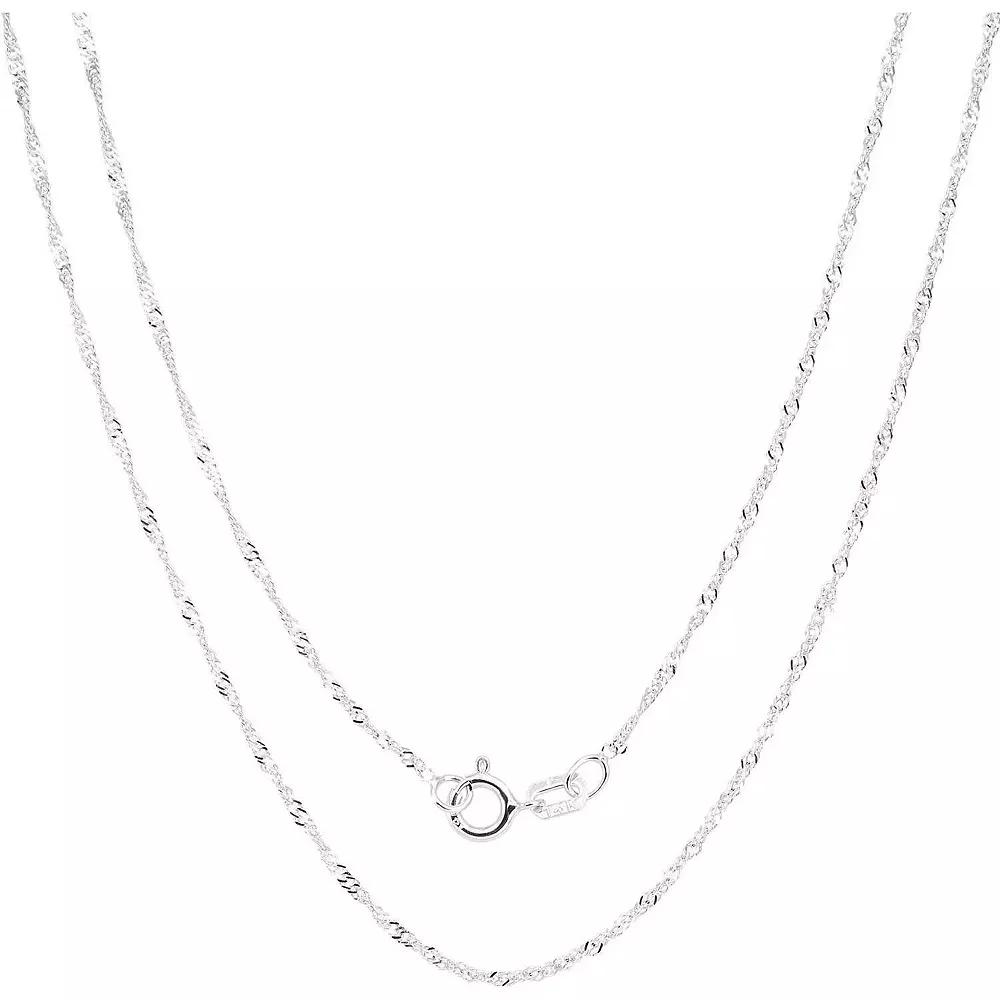 925 Sterling Silver Singapore Chain is designed with a brilliant finish that catches the light for ultimate shine. Click on this JEWELRY & WATCHES GUIDE to learn about fit, styles, materials and more! 925 Sterling Silver Singapore Chain is designed with a brilliant finish that catches the light for ultimate shine. Click on this JEWELRY & WATCHES GUIDE to learn about fit, styles, materials and more! FEATURES Chain type: Singapore Clasp: spring-ring Metal: sterling silver Finish: polished Packaging: boxed Nickel free Imported Size: 20". Gender: female. Age Group: adult.