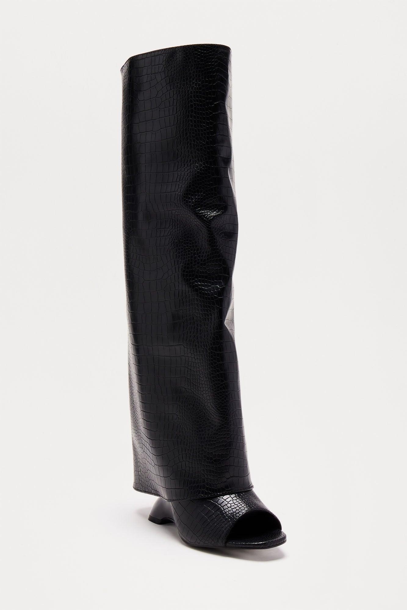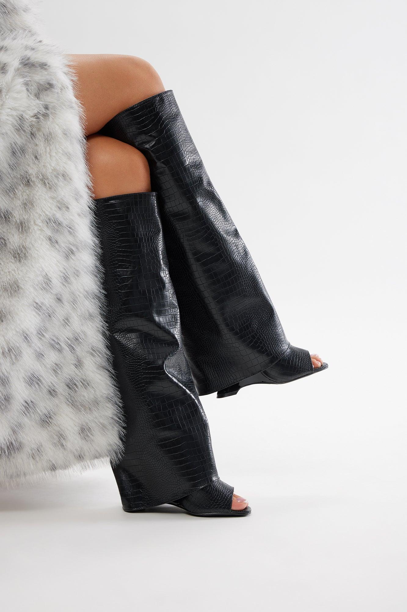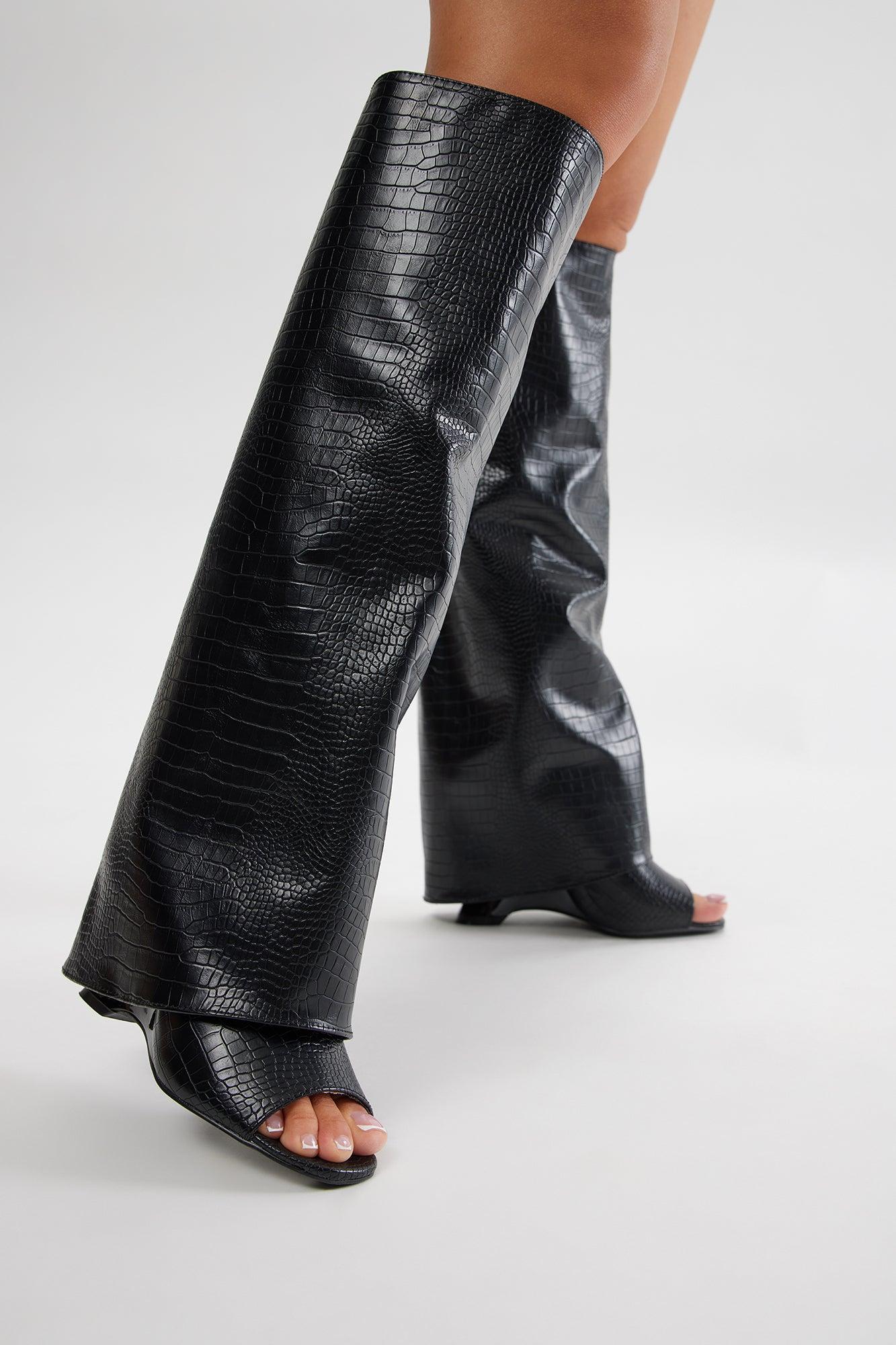 Theo Croc Knee High Boots - Black