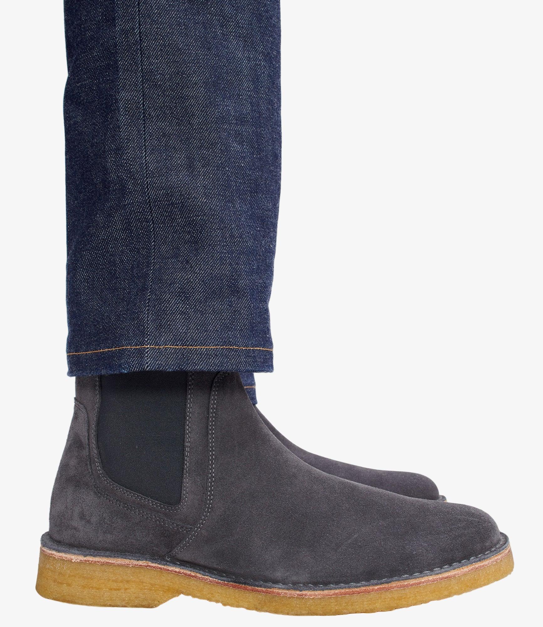 -Ankle boots in suede split leather. -Elasticated side gores.-Ankle high.-Tone-on-tone topstitching.-Crepe sole.