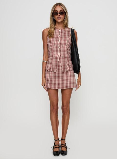 The Red Plaid Zipper Fly Tweed Mini Skirt
