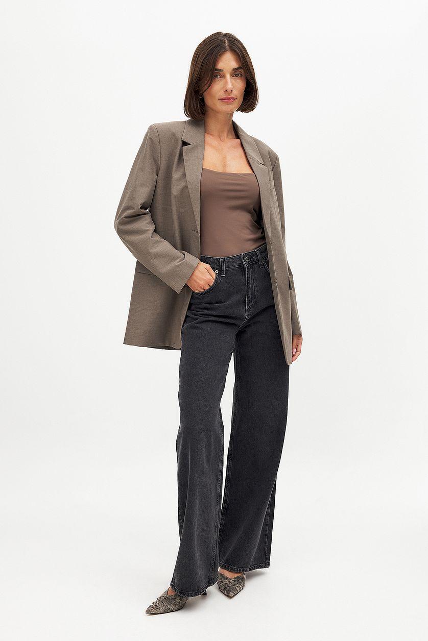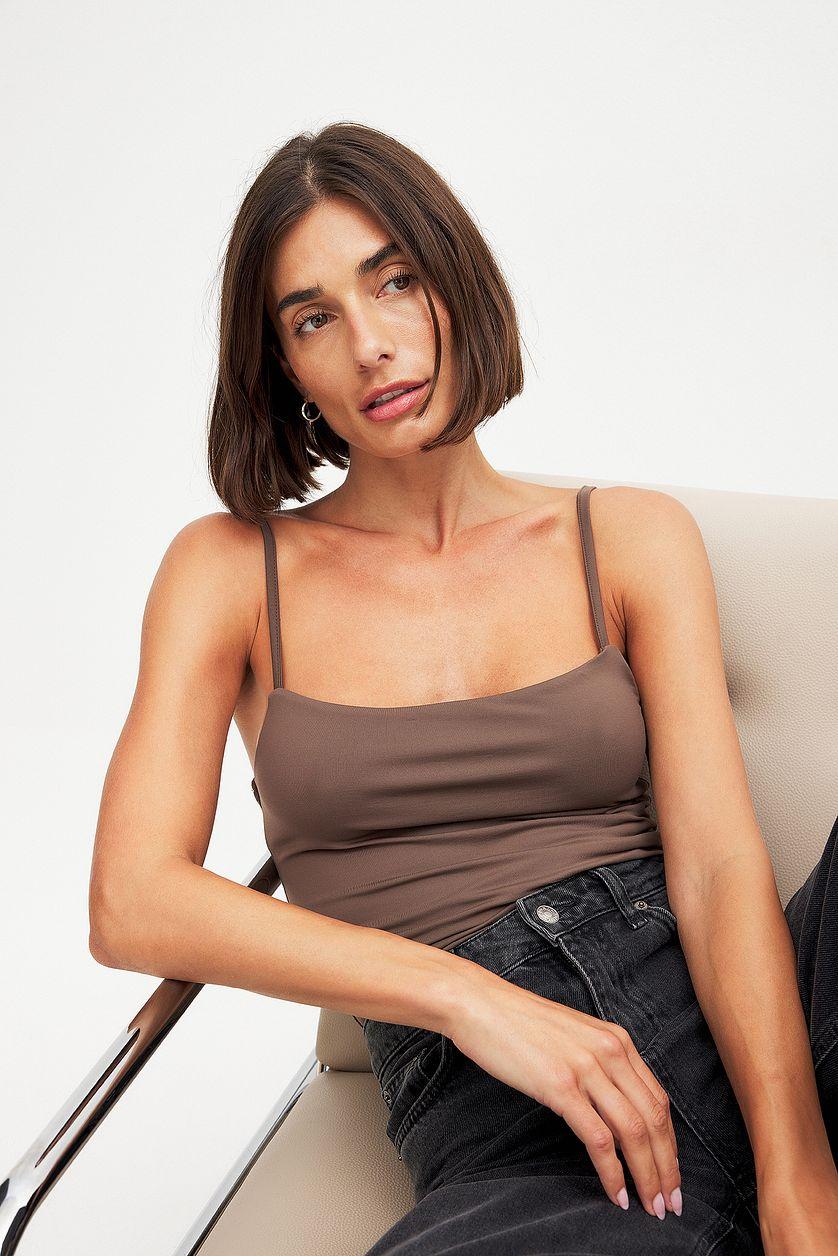 This body features a form fit and thin, adjustable shoulder straps. It has a smooth stretchy material and a thong design with a snap button closure.