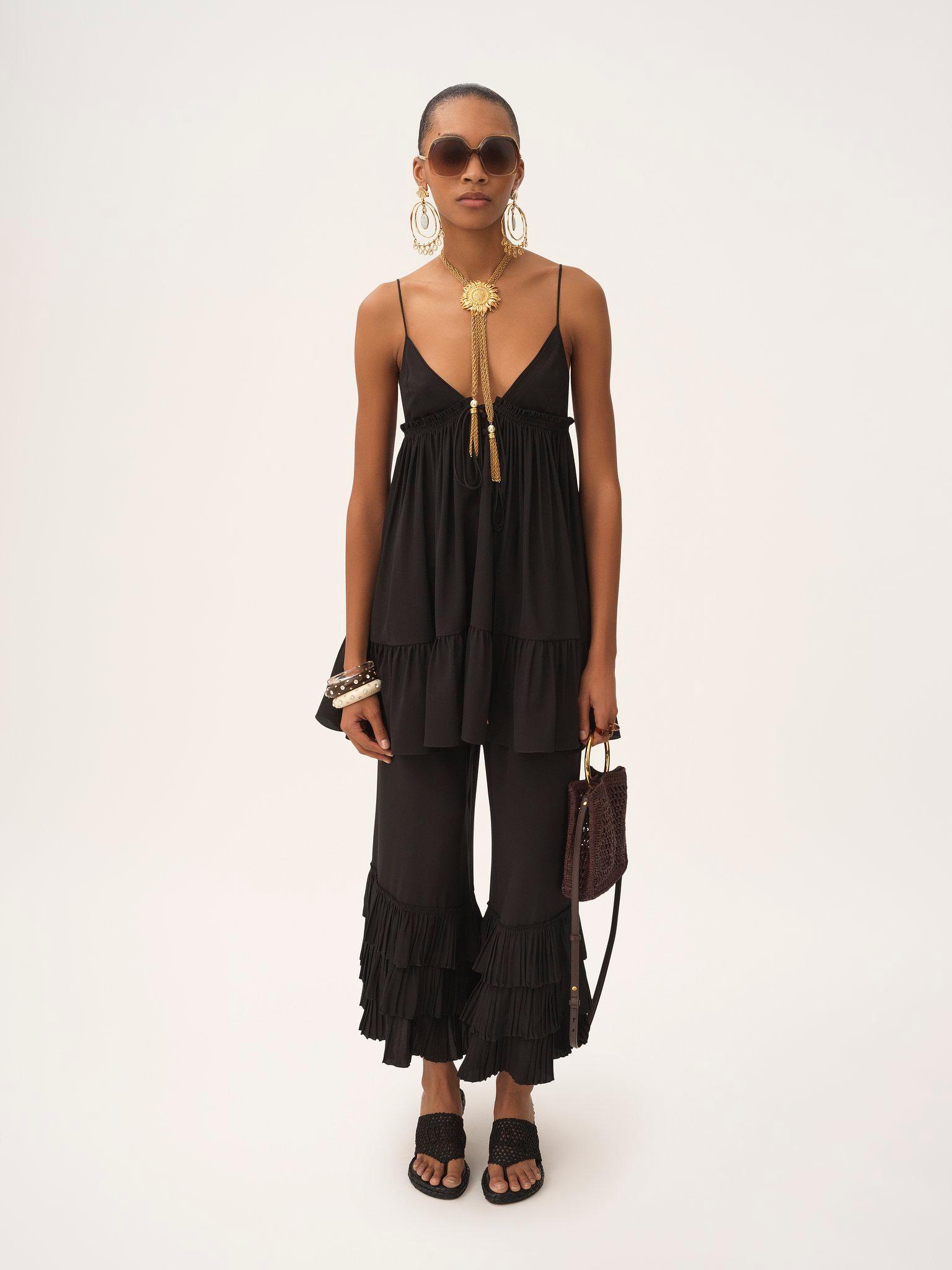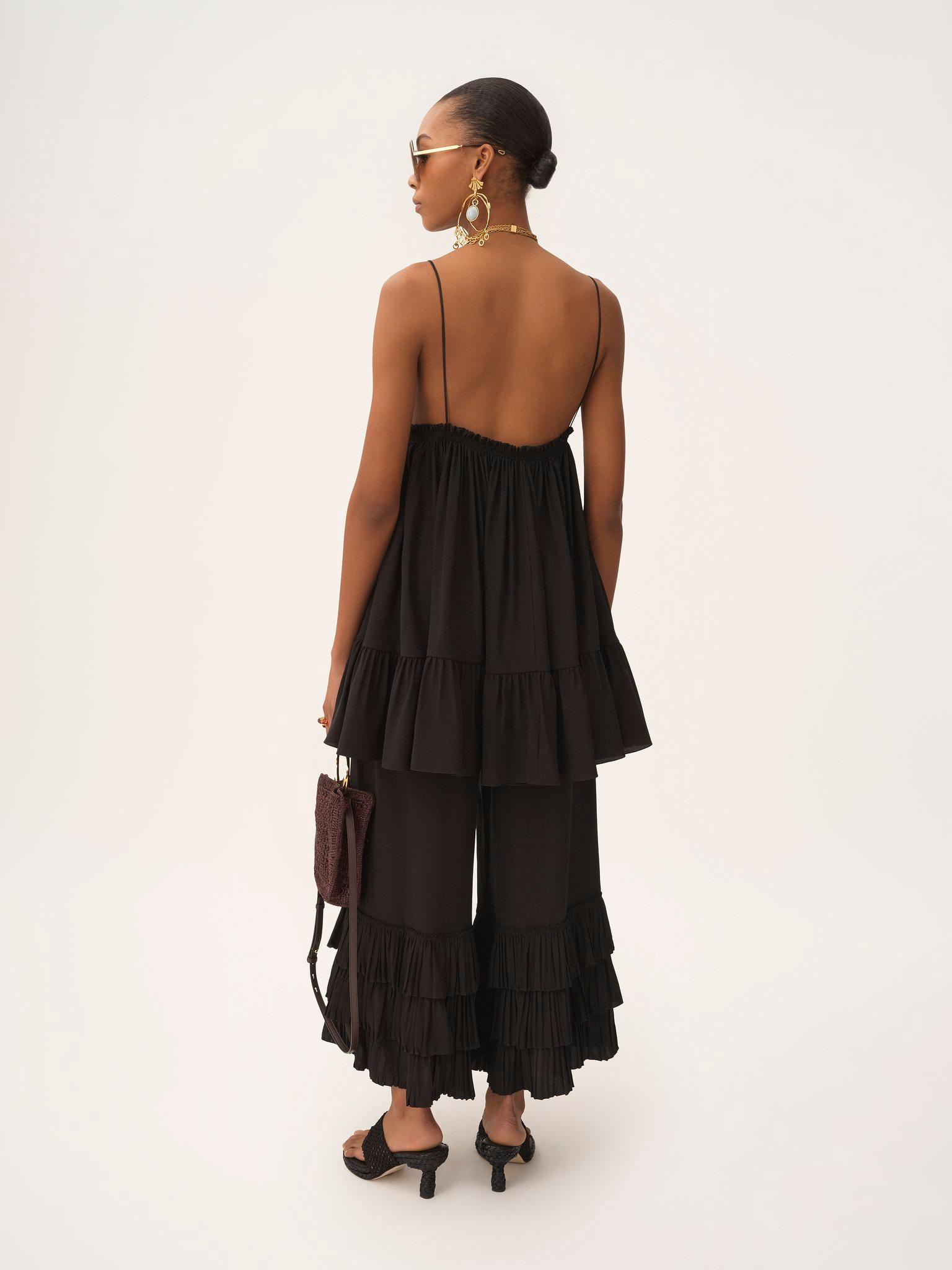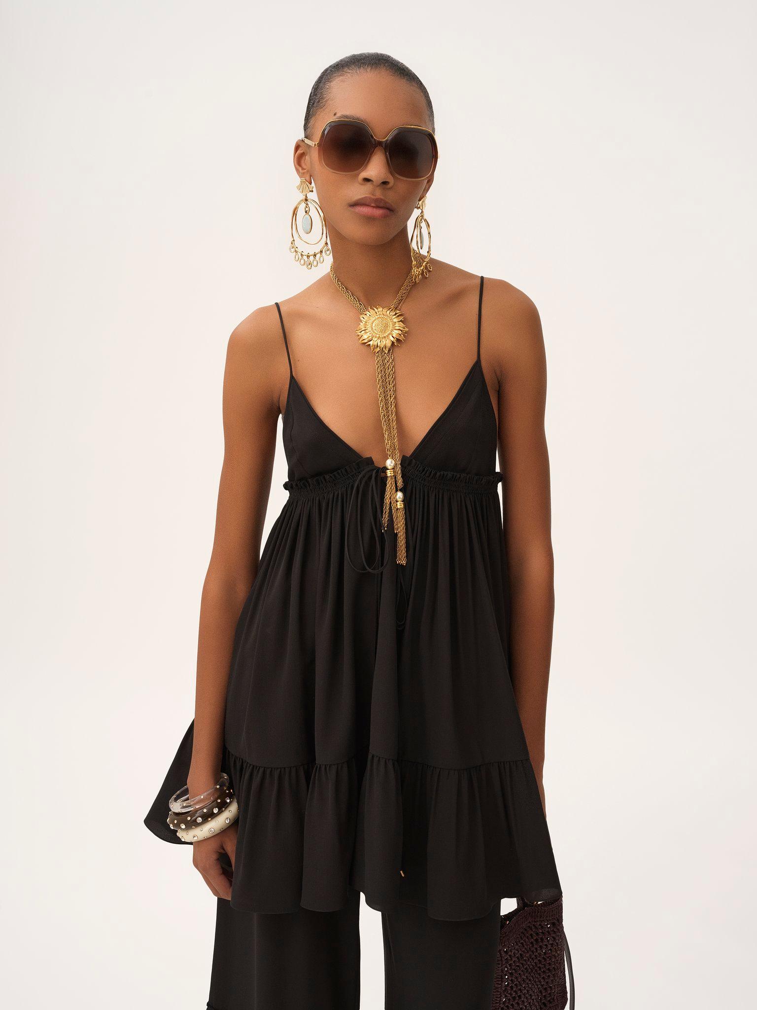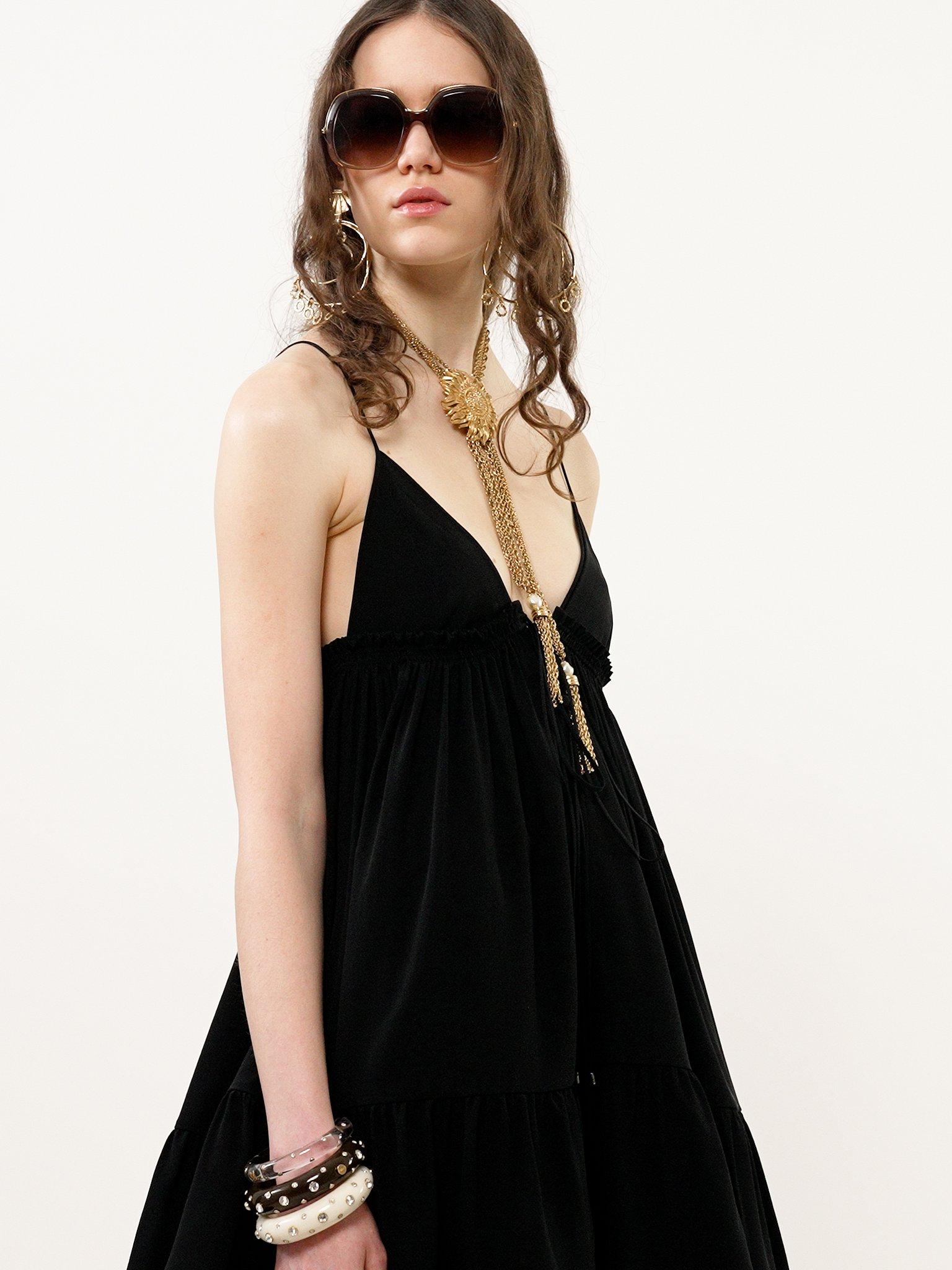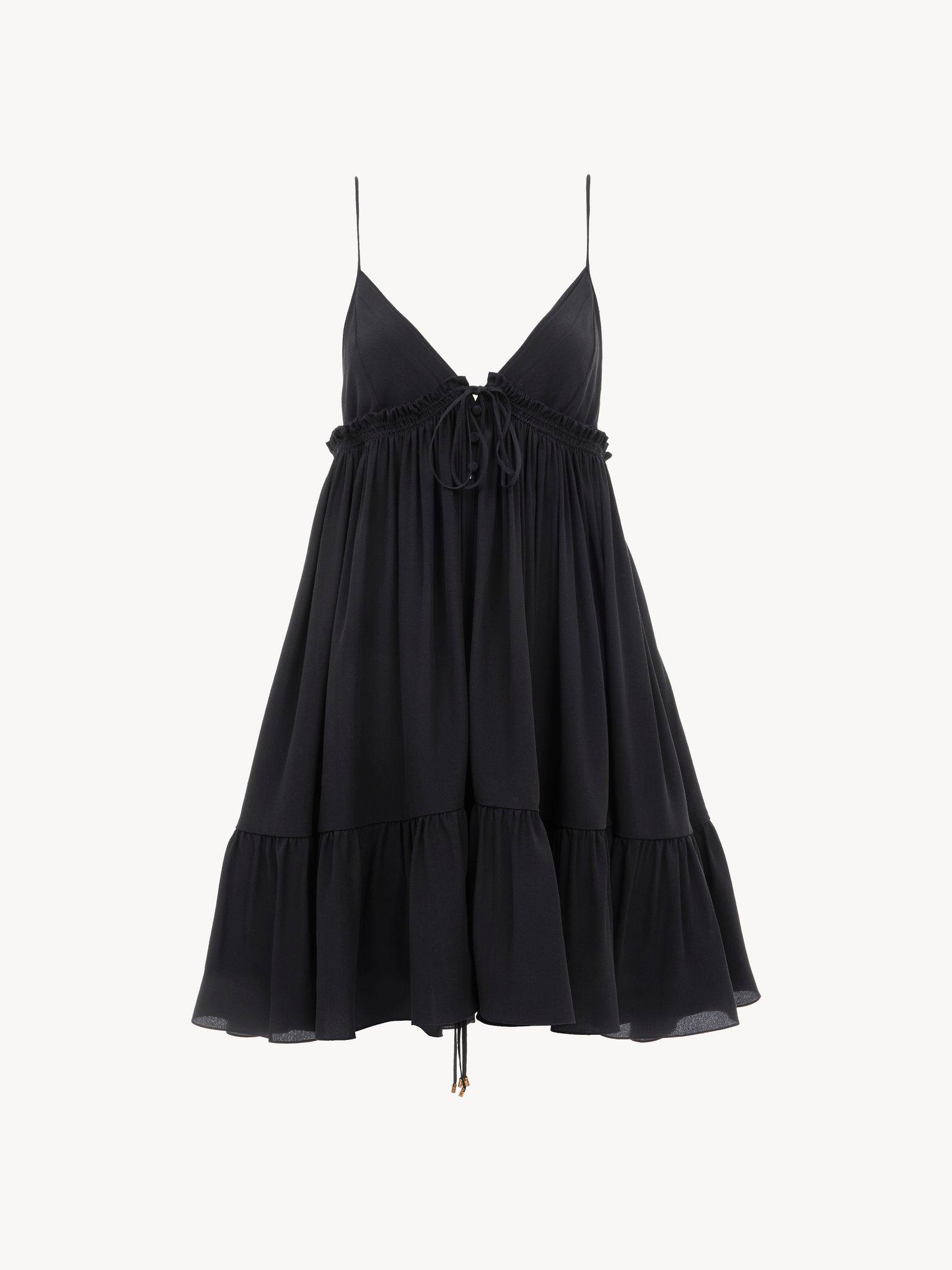 Thin-strap gathered mini dress in crêpe de chine