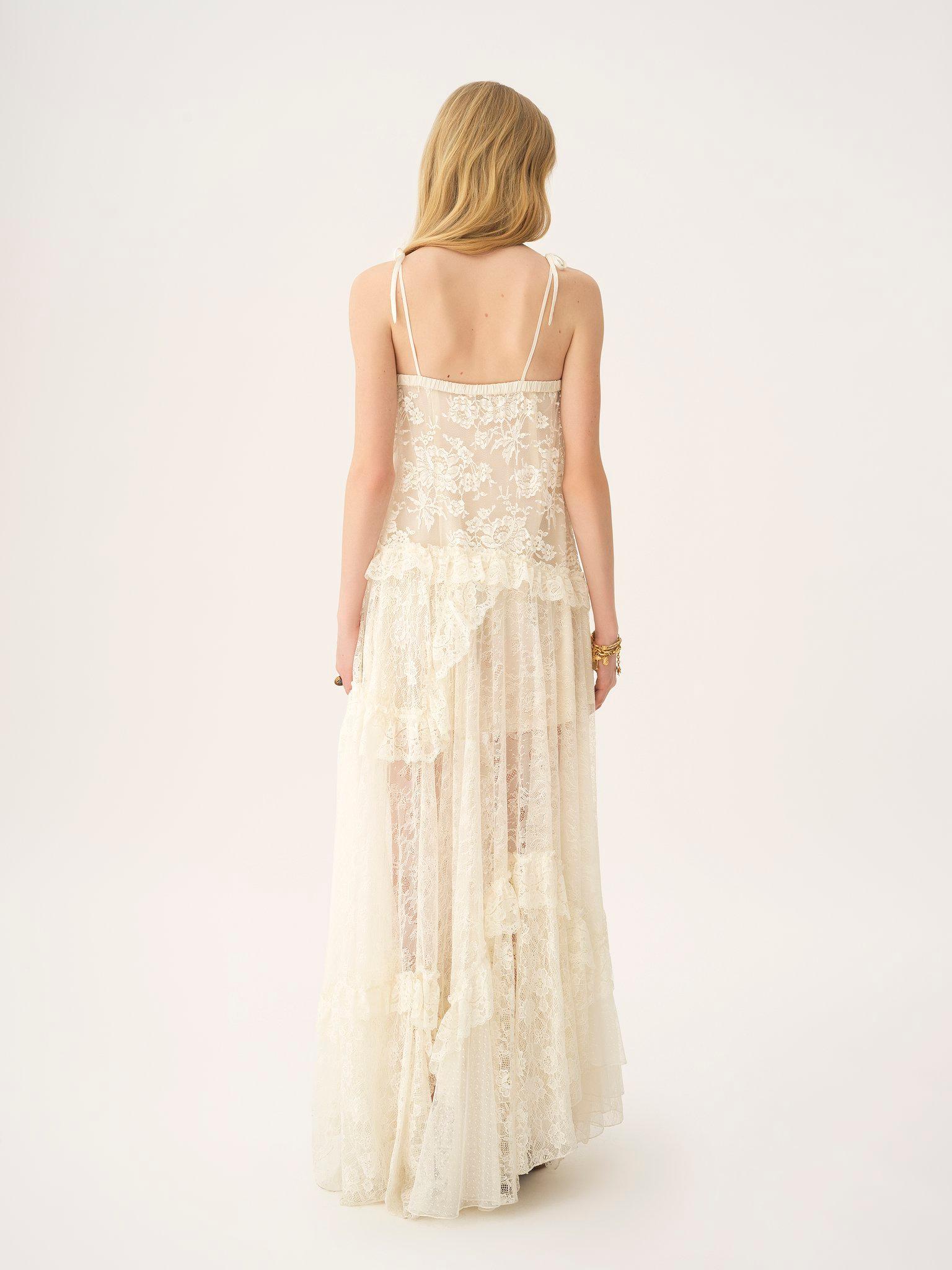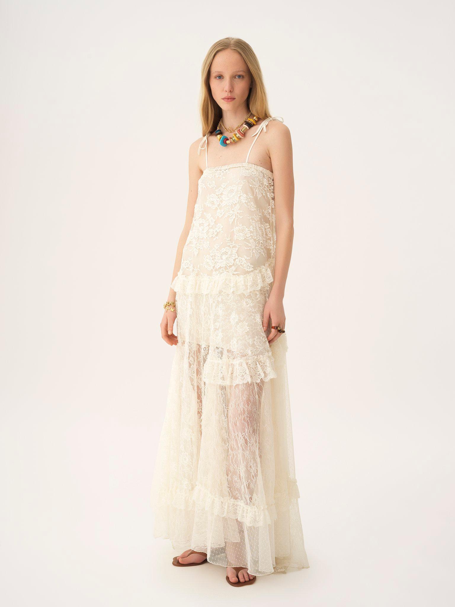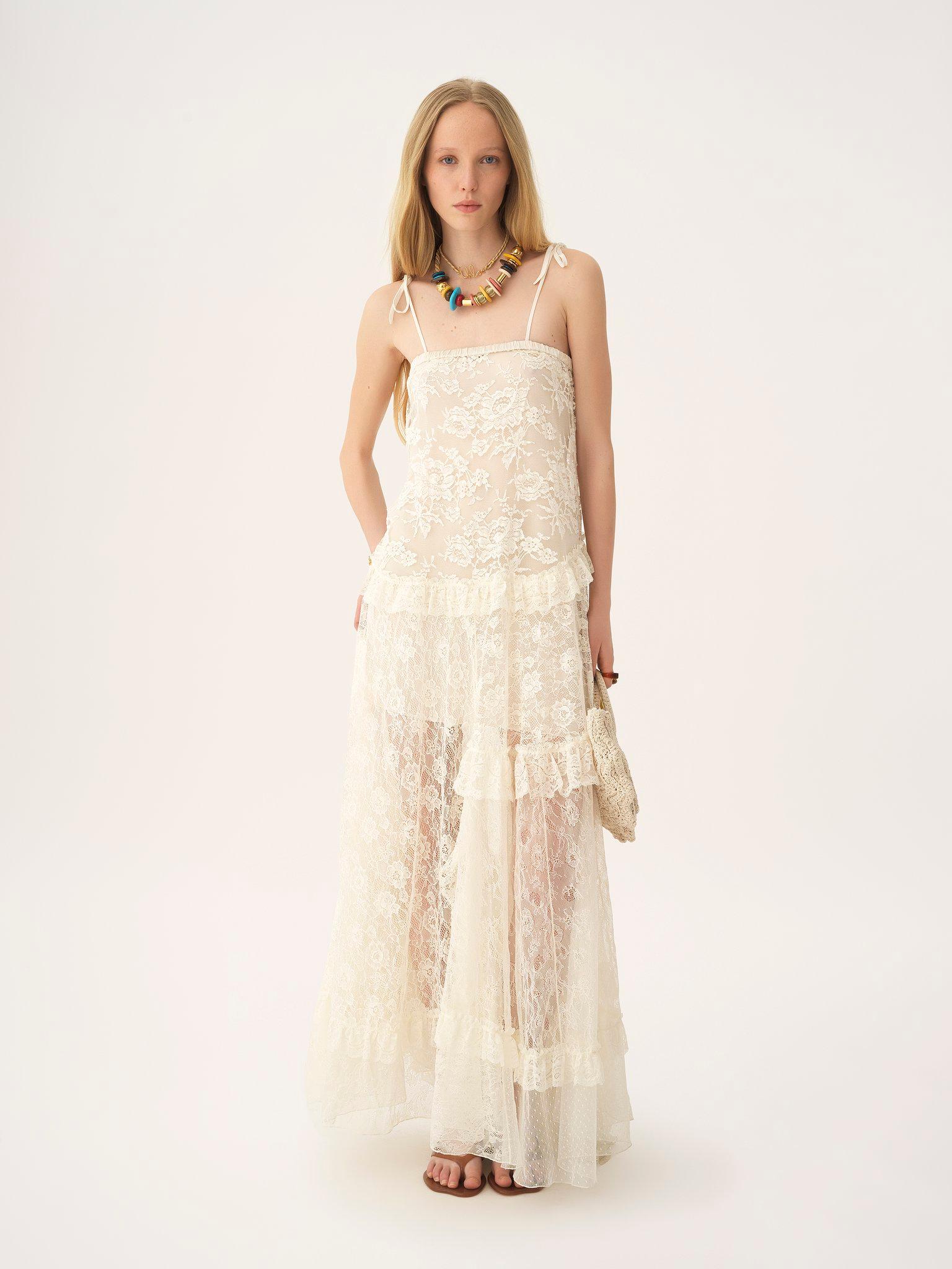 Thin-strap long dress in embroidered lace