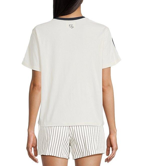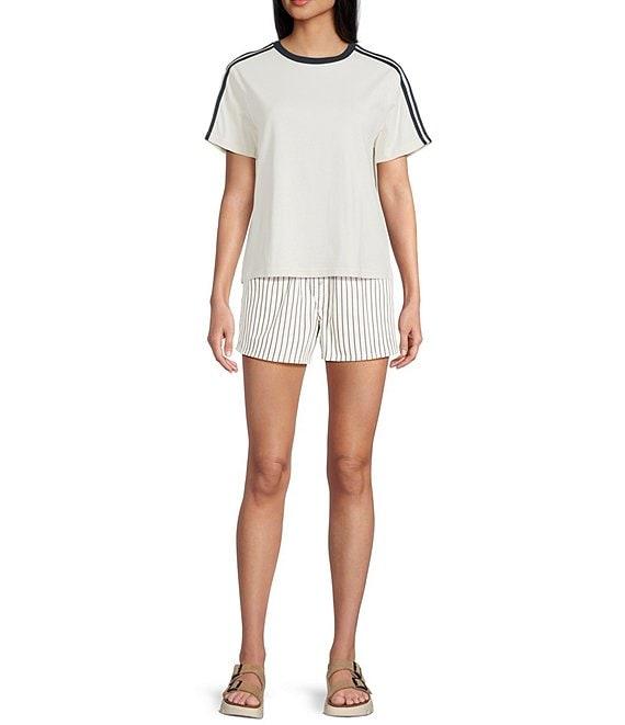 From Things Between, this t-shirt features:Crew neckShort sleevesContrasting trim at necklineSleeve stripe detailBox topPullover stylingCottonHand washImported.