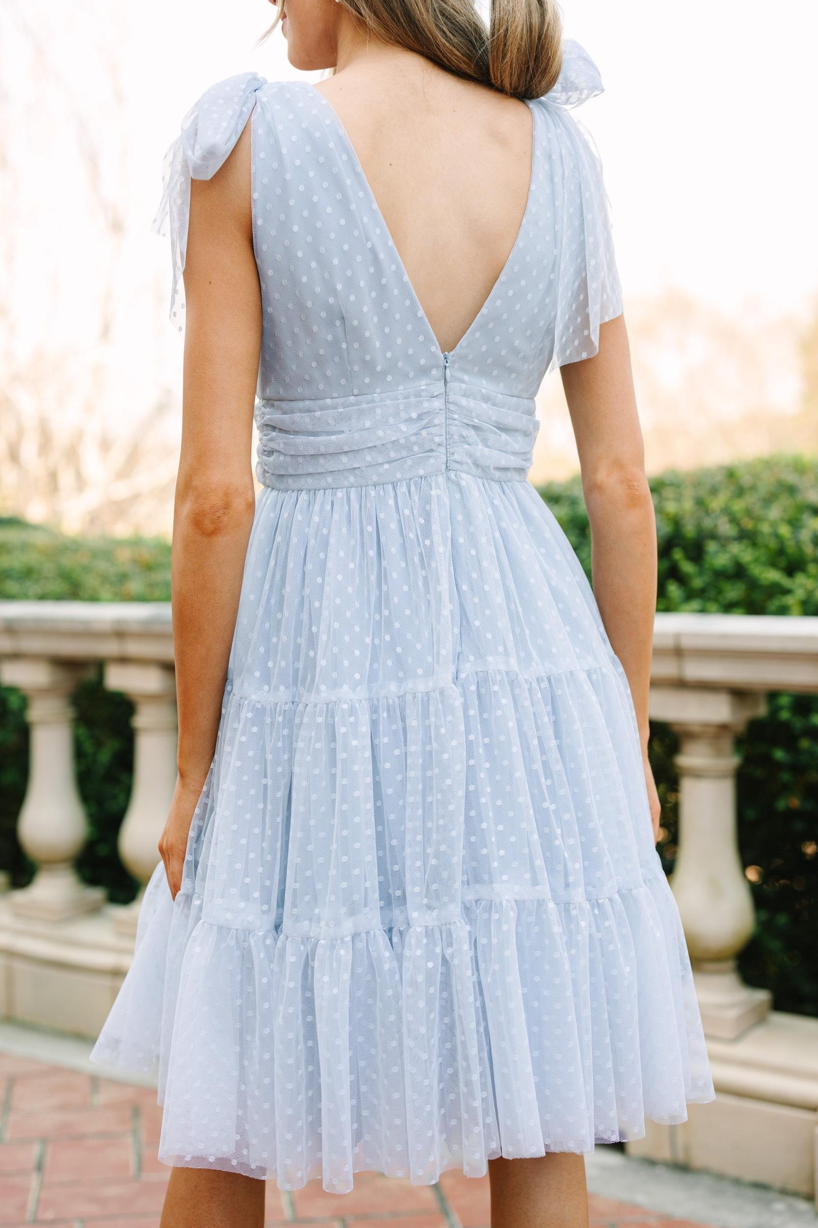 Everyone will be thinking about you in this dress! It's stunning and you are going to be stunning in it! That fit is so flattering and we love that light feminine Swiss dot fabric! This dress features Swiss dot fabric, a v-neckline, bow details on the shoulder straps, and a zip back closure. Material has no amount of stretch.London is wearing the small.