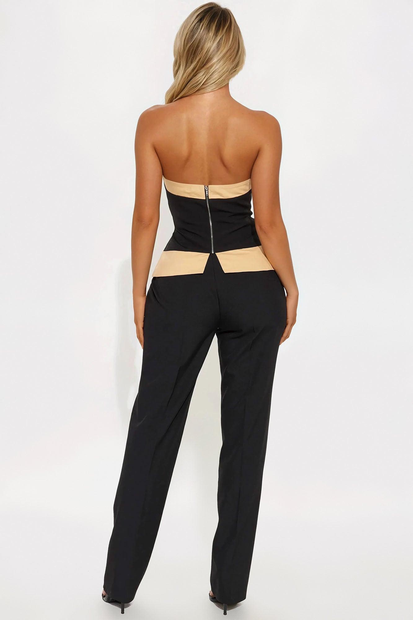Top Tiered Blazer Pant Set - Black