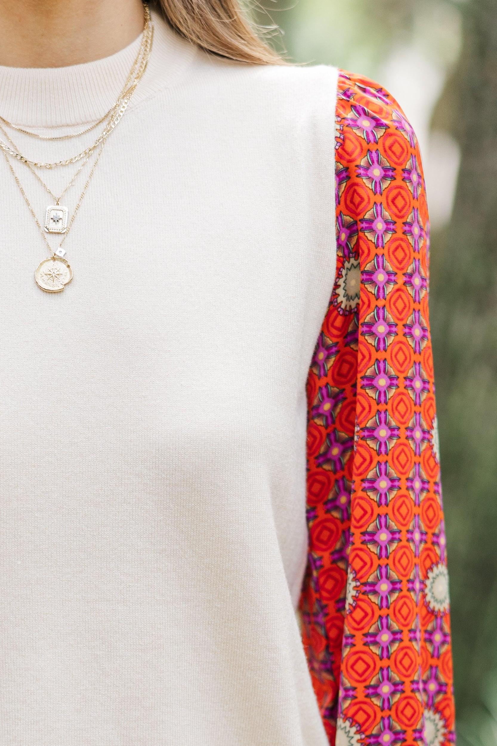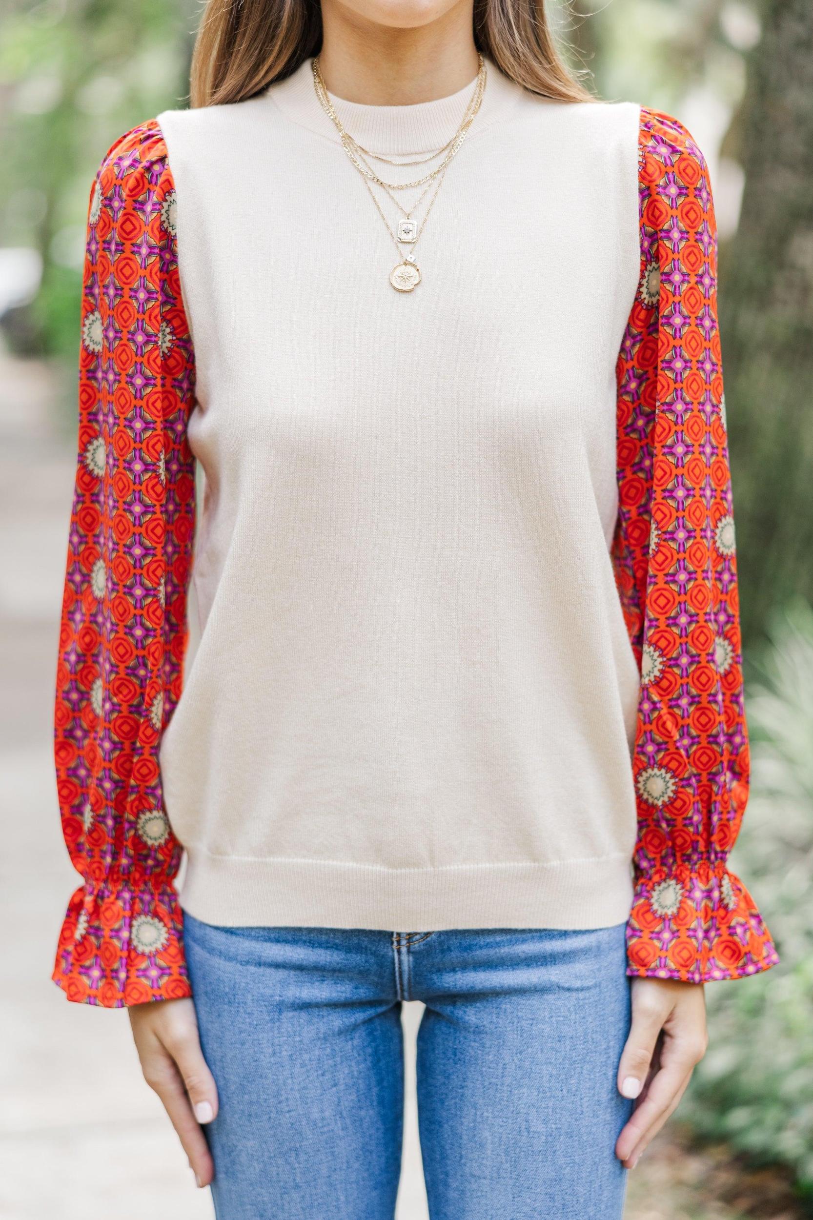 This sweater is so much fun! Those sleeves are so bold and perfectly offset the simplicity of the solid body. This sweater is going to look great with everything from wide leg jeans to pencil skirts! round neckline Long bubble sleeves with abstract print Knit body Generous stretch Sydney is wearing the small.