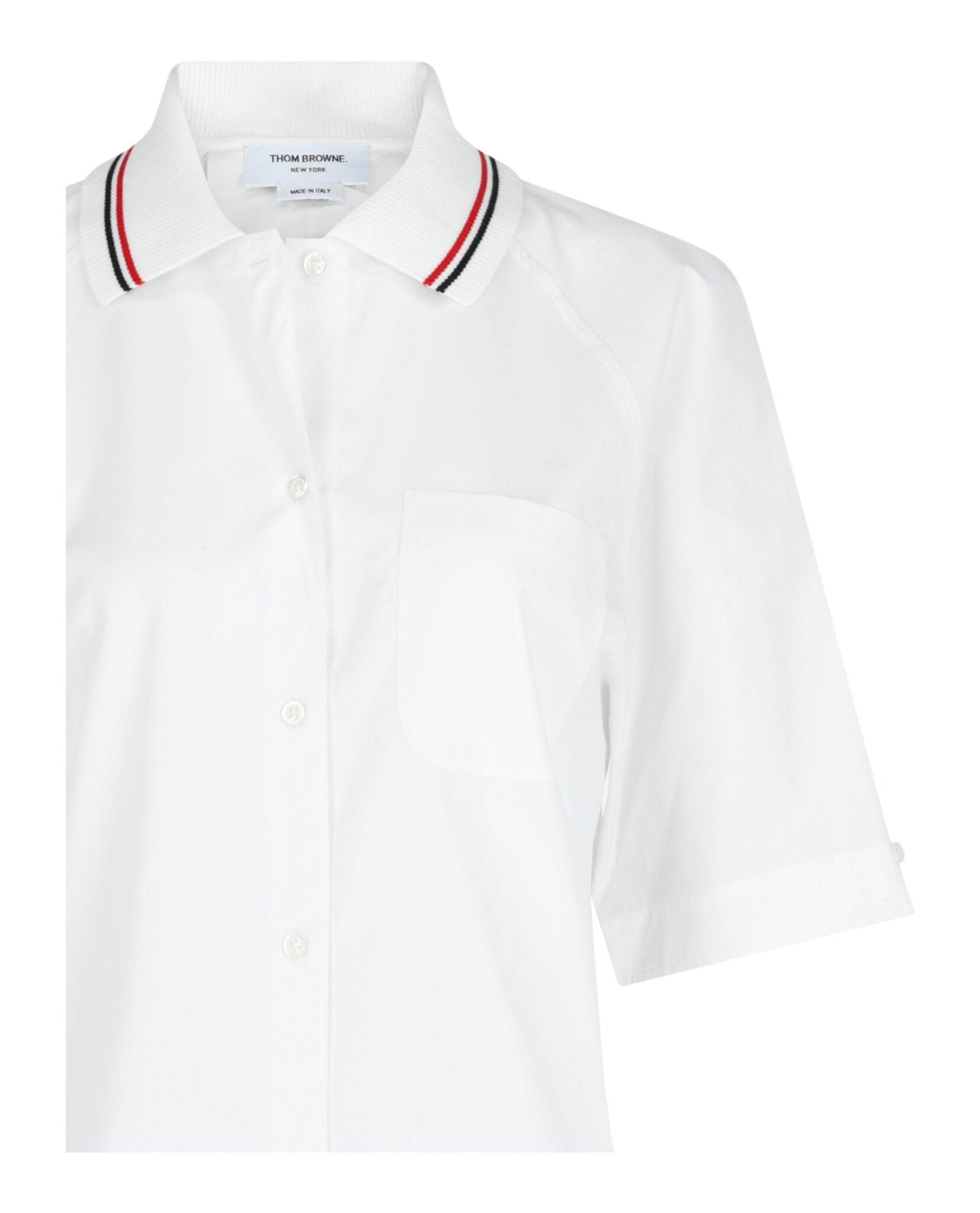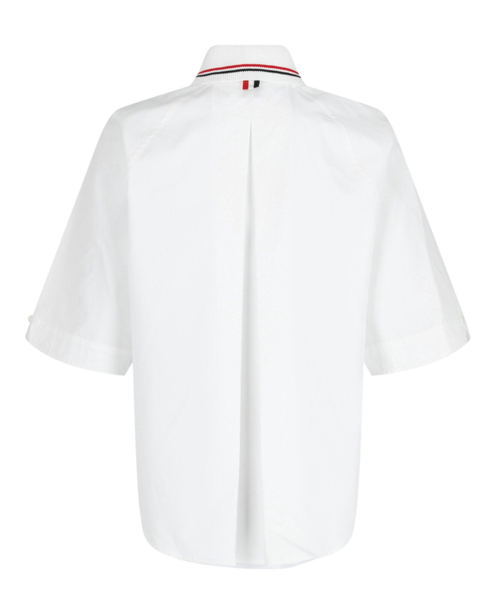 Nametag applique; Pleated back yoke; Signature striped grosgrain loop tab; Chest patch pocket