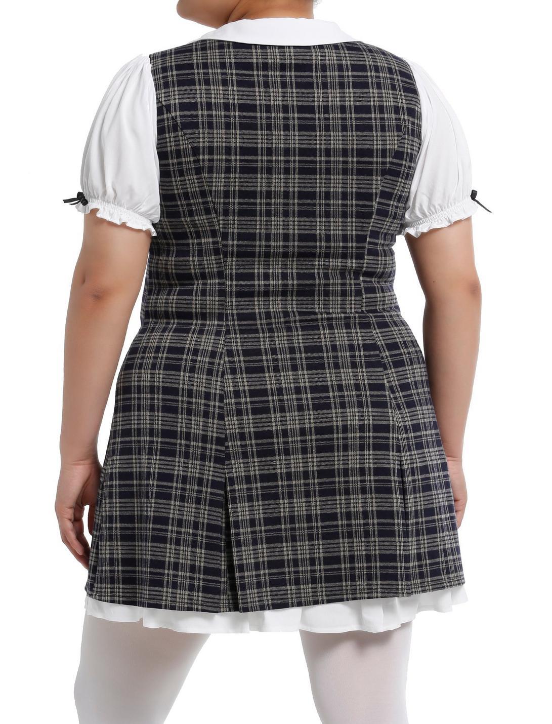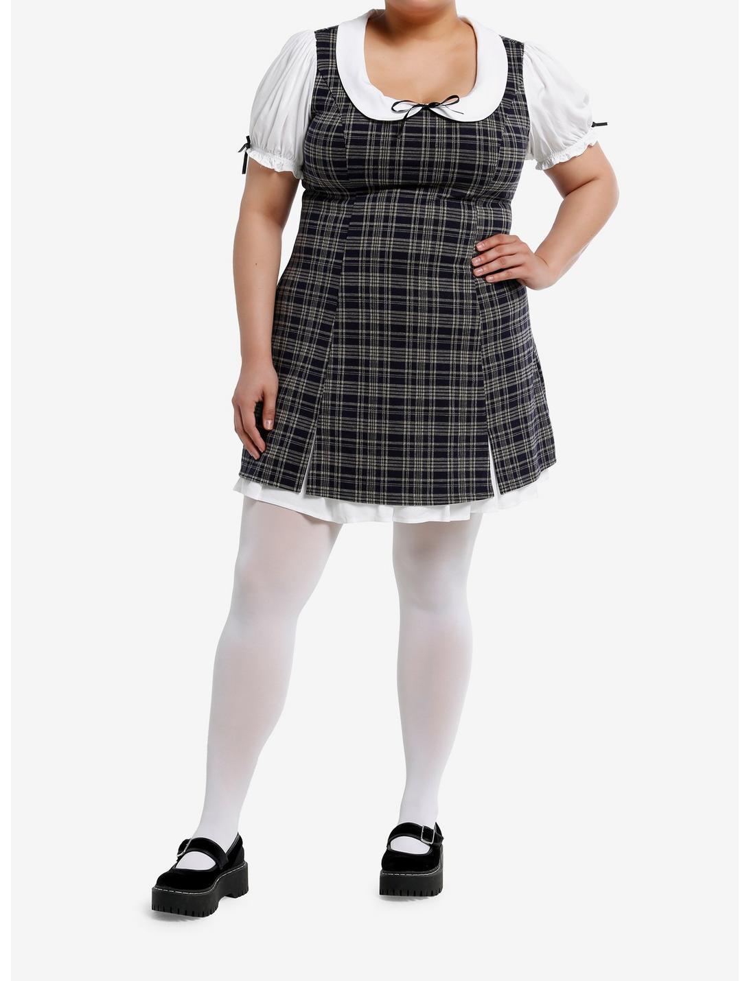 Thorn & Fable Brown & Black Plaid Puff Sleeve Collar Mini Dress Plus Size
