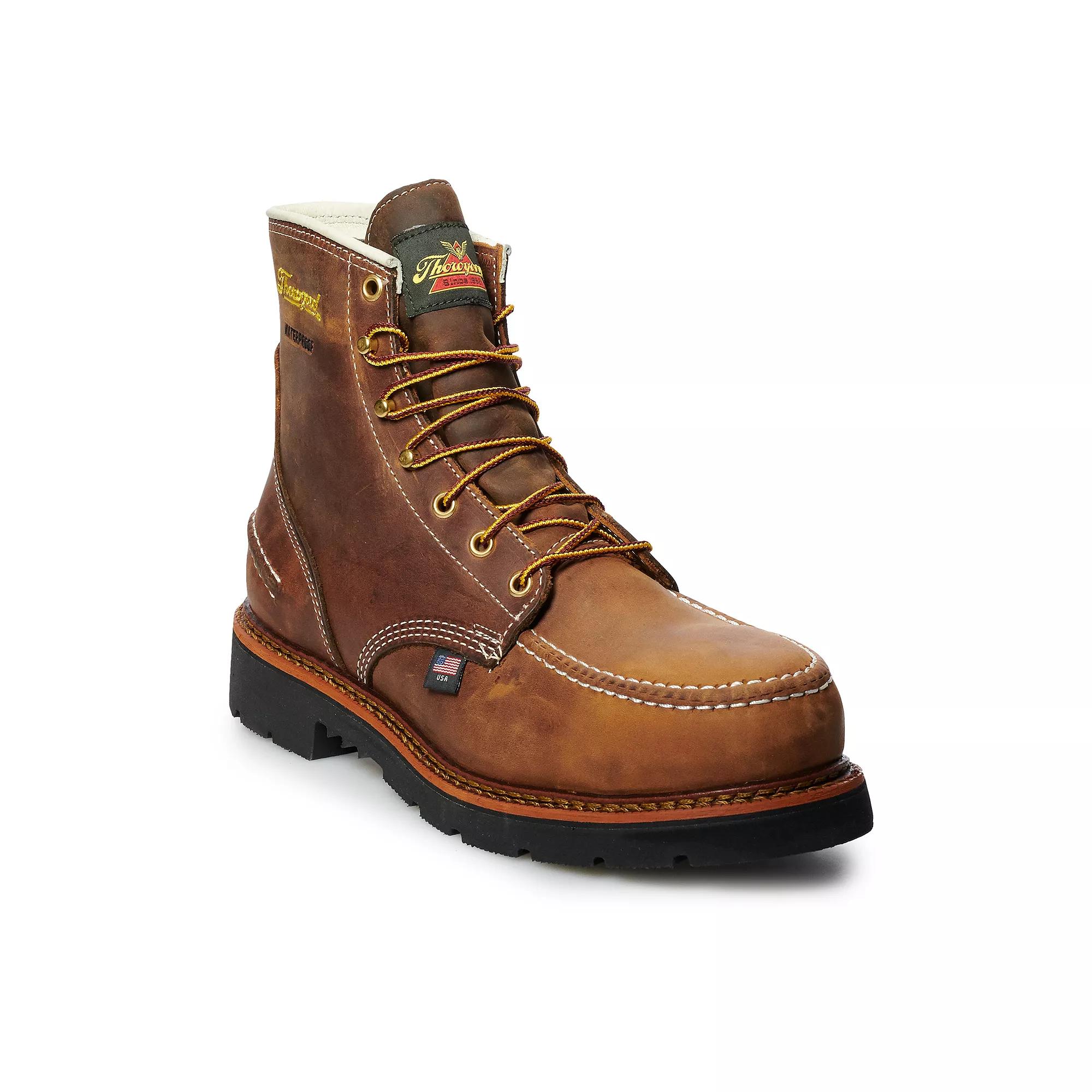 Enjoy the classic, hard-working style of mid-century America in these mens 1957 Crazyhorse waterproof steel-toe work boots from Thorogood. Enjoy the classic, hard-working style of mid-century America in these mens 1957 Crazyhorse waterproof steel-toe work boots from Thorogood. BOOT FEATURES Steel safety toe Trail Crazyhorse, full-grain leather X-Stream Waterproof Removable ultimate shock absorption footbed Fiberglass shank Goodyear storm welt construction MAXWear90 slip resisting outsole BOOT CONSTRUCTION Leather upper Fabric lining Manmade outsole SHOE DETAILS Moc toe Lace-up closure Padded footbed 6-in. shaft Gift Givers: This item ships in its original packaging. If intended as a gift, the packaging may reveal the contents. WARNING: This product can expose you to Di(2-ethylhexyl)phthalate(DEHP) which is known to the State of California to cause cancer or reproductive toxicity. For more information go to www.P65Warnings.ca.gov. Size: Medium (9.5). Color: Brown. Gender: male. Age Group: adult.