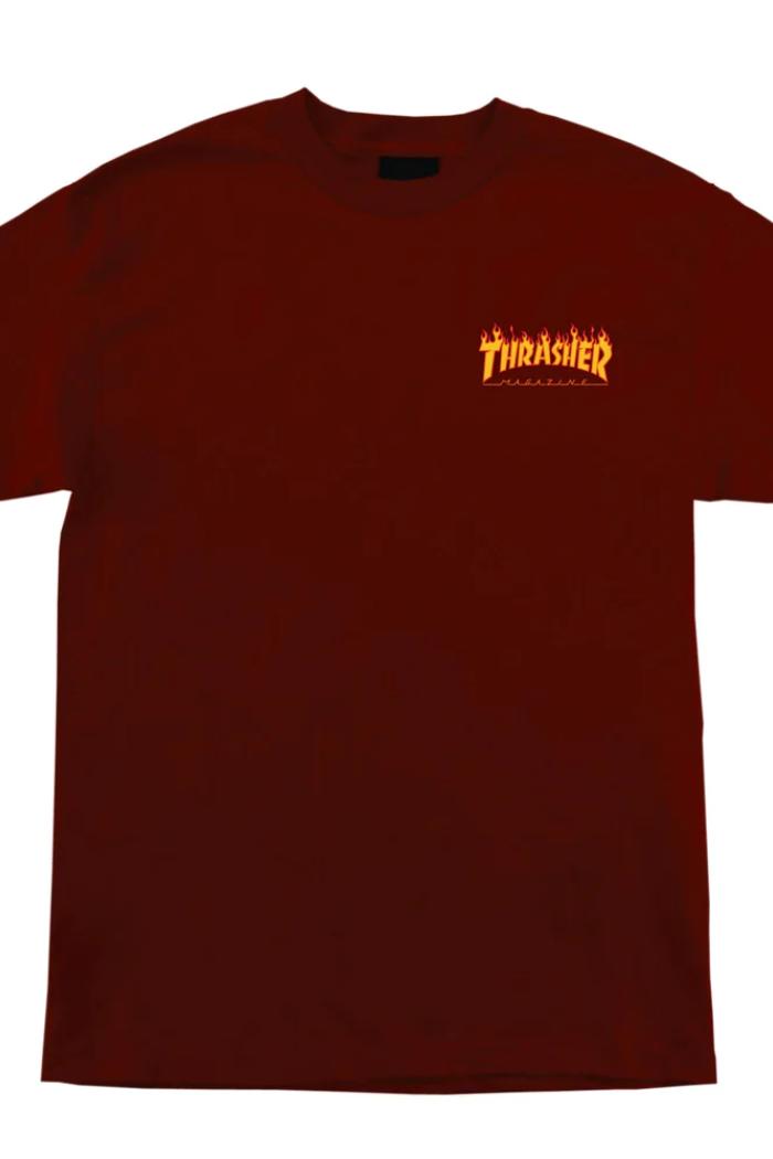 Thrasher links up with our own Santa Cruz Skateboards to drop one of our most firing collaborations of the year. COTY? The new Thrasher Flame Dot men's short-sleeve regular fit t-shirt features small front and large back Santa Cruz x Thrasher Flame Dot logos printed in soft hand ink. Skate and destroy till the end.