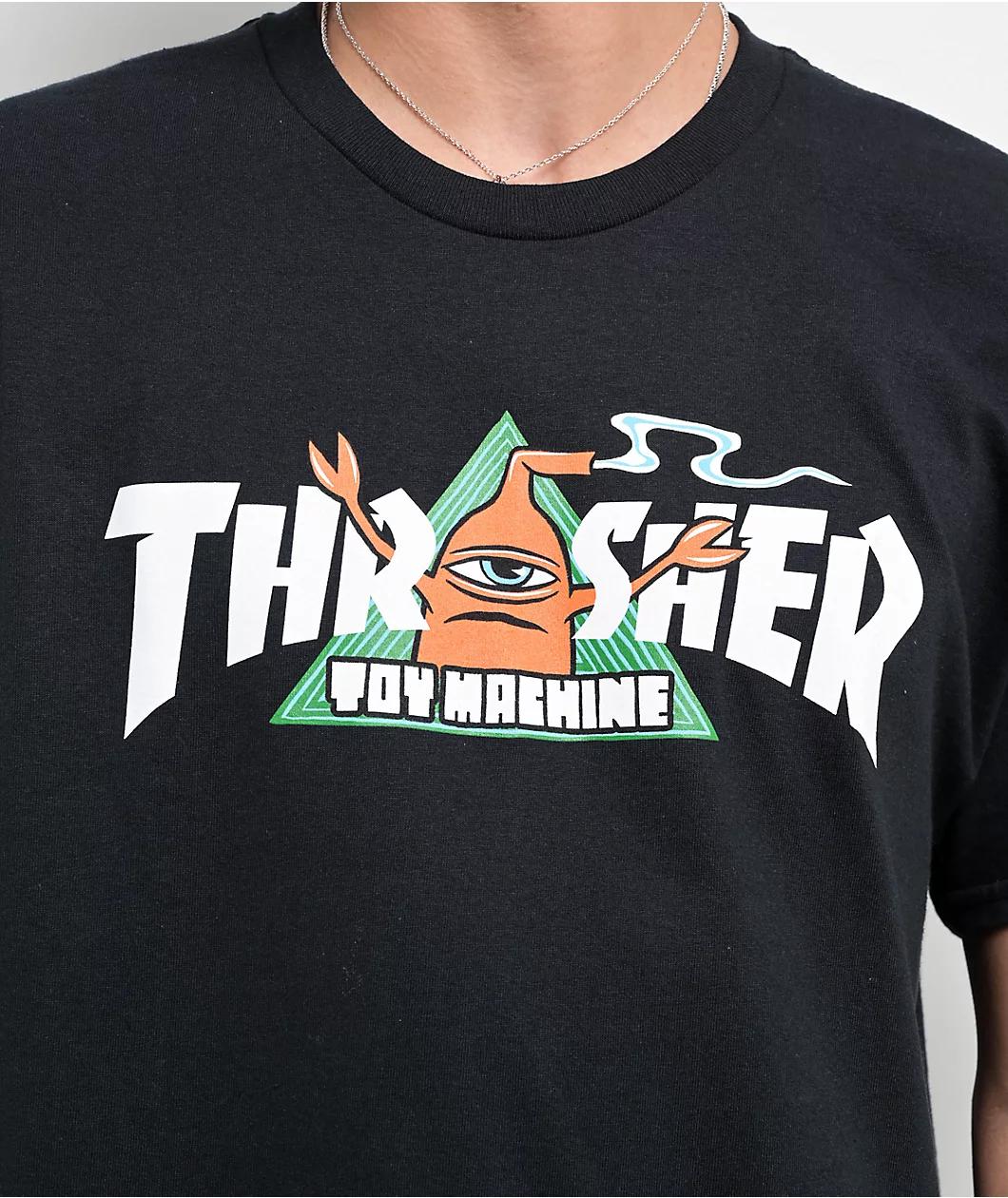 Created in tandem by Thrasher Magazine and Toy Machine Skateboards, the collaborative Vortex t-shirt arrives in a solid black cotton construction with a co-branded, screen-printed graphic on the chest. Showcasing Ed Templeton's "Transistor Sect" cycl