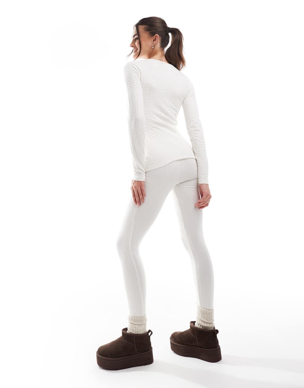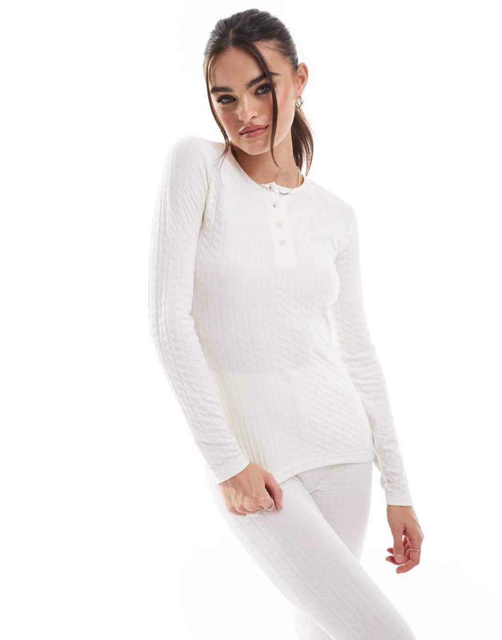 Threadbare Ski pointelle thermal set in ecru
