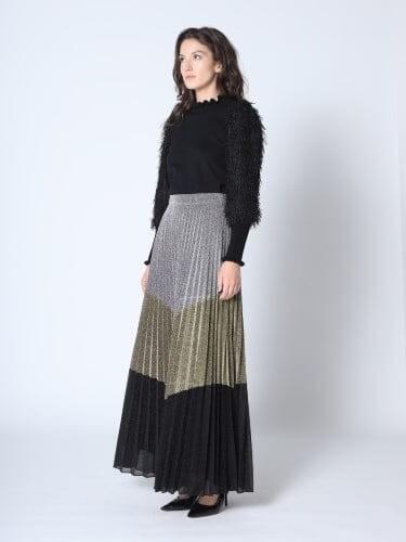 Flashy and bright, this shiny long skirt has a smooth feeling on the inside, complementing the smooth flow of the skirt.