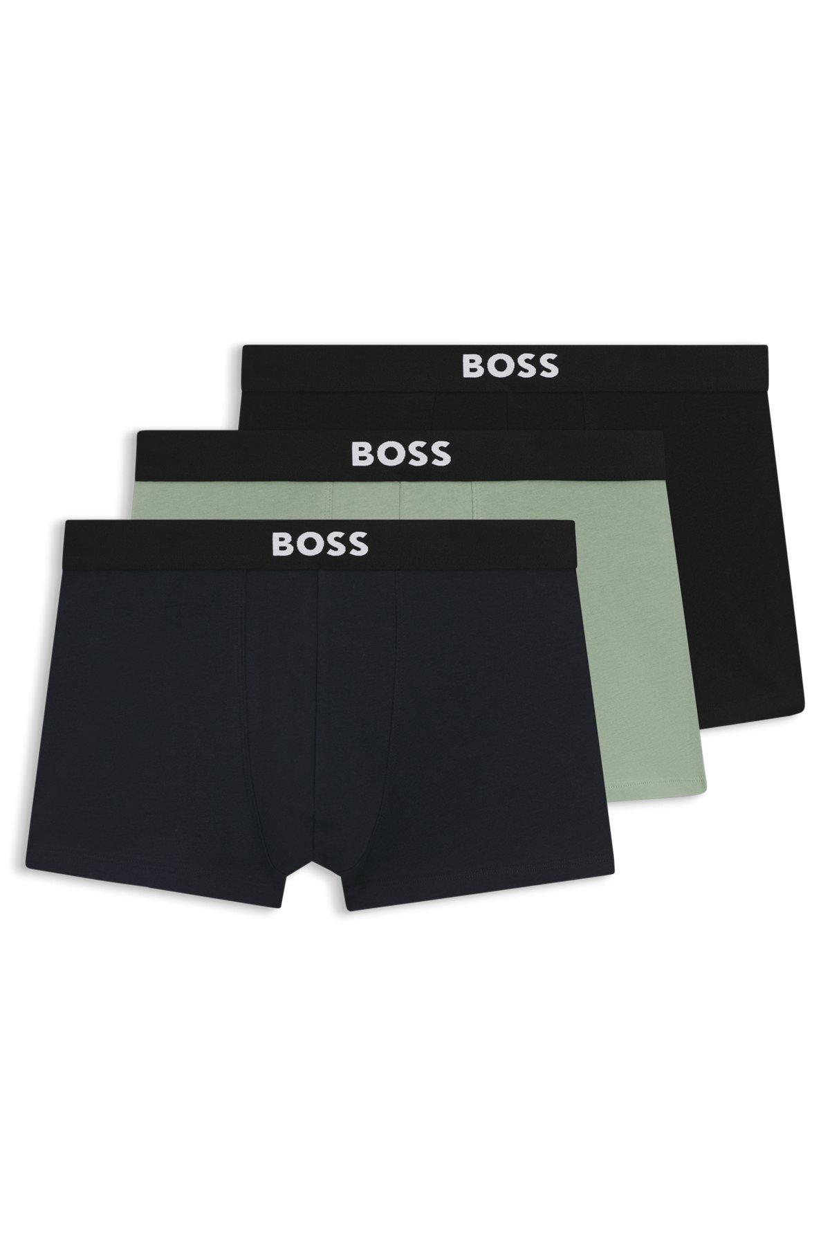 With their ergonomic fit and soft stretch-cotton jersey, these three pairs of BOSS Menswear trunks offer refined comfort. Contrast logo on waistband.