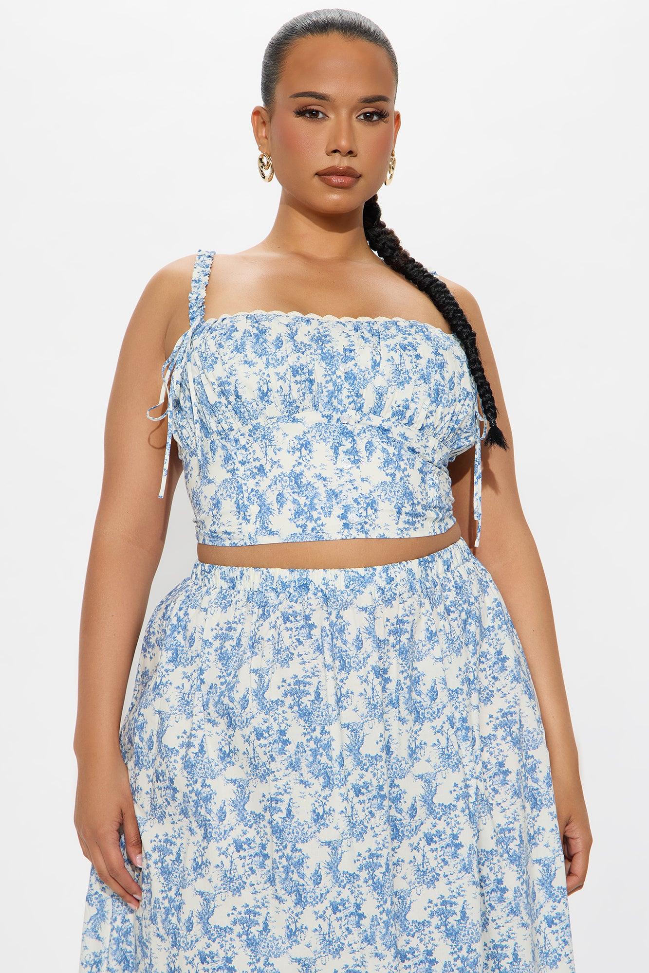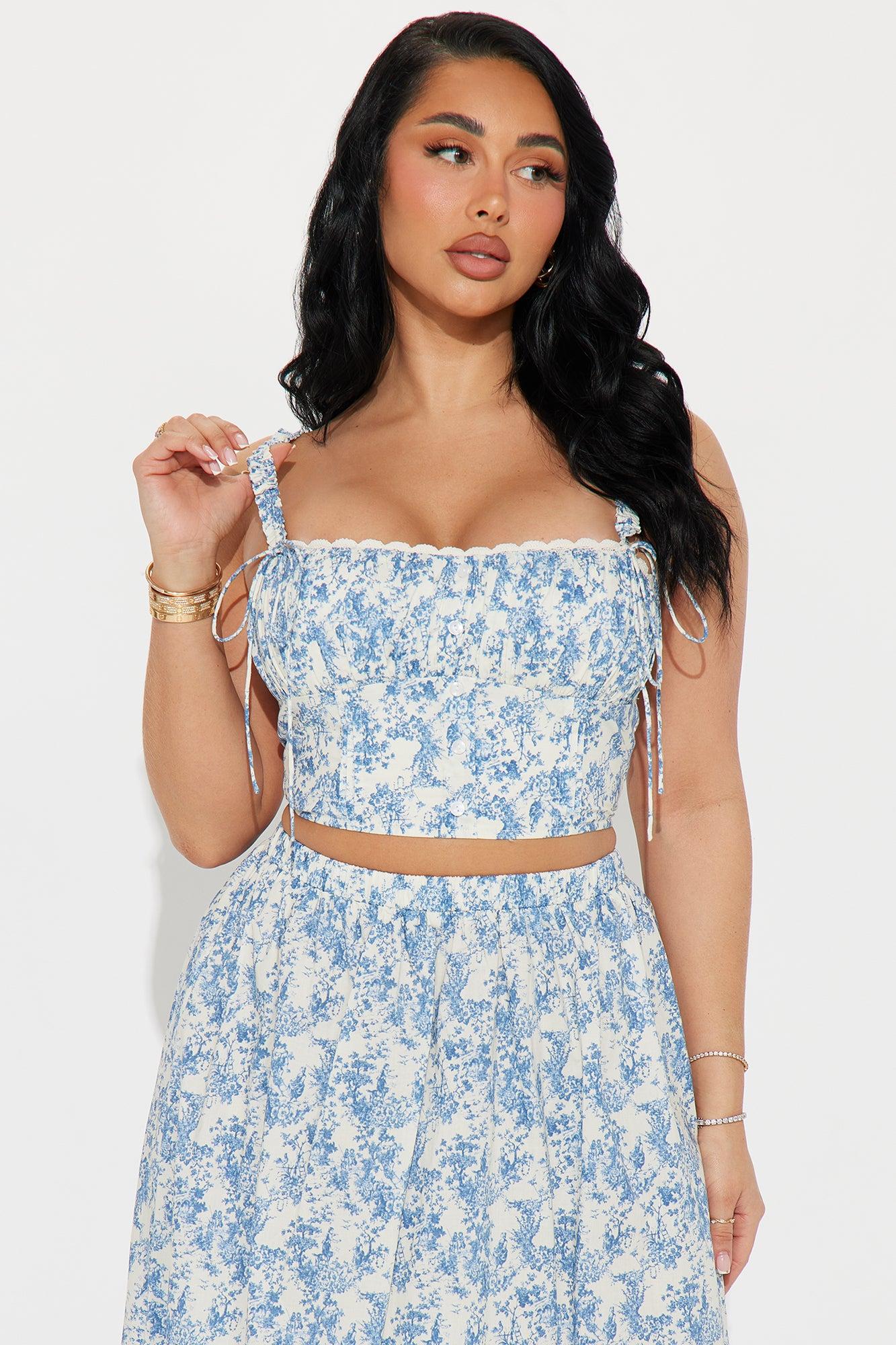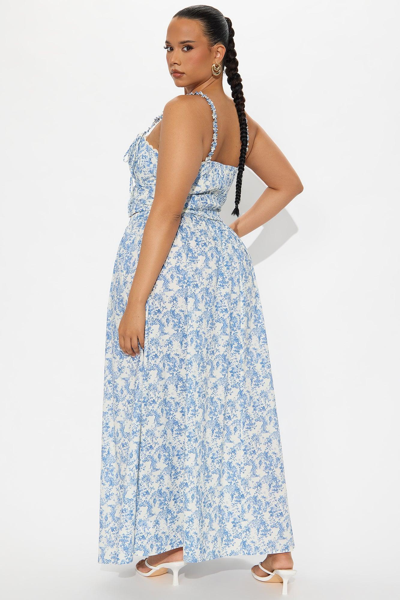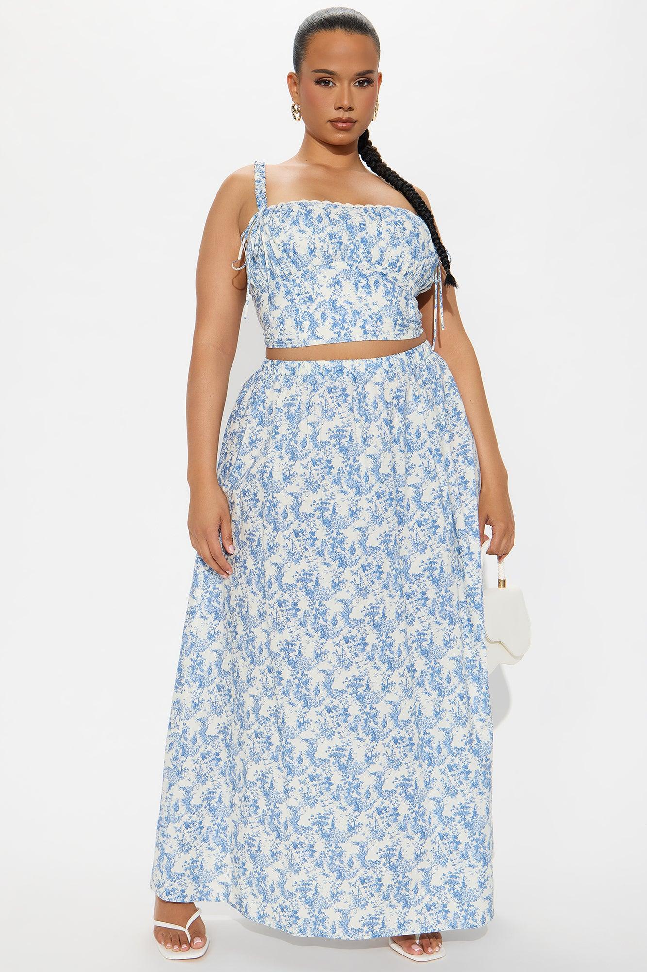 Through The Field Maxi Skirt Set - Blue/combo