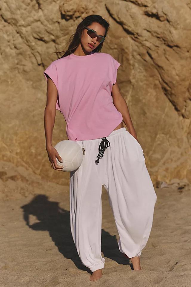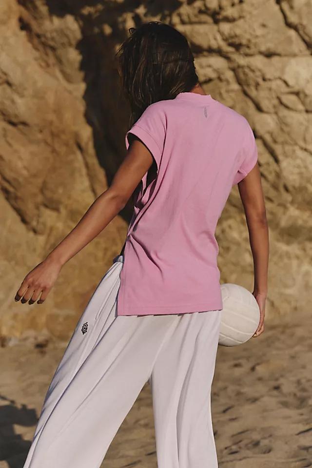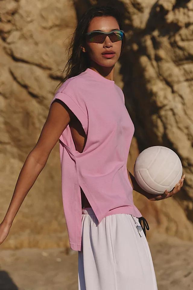 An effortless layer for going to and from workouts, this tee features a super soft and breathable, 100% Cotton fabrication in an oversized muscle tee silhouette for sporty-cool vibes wherever you go.