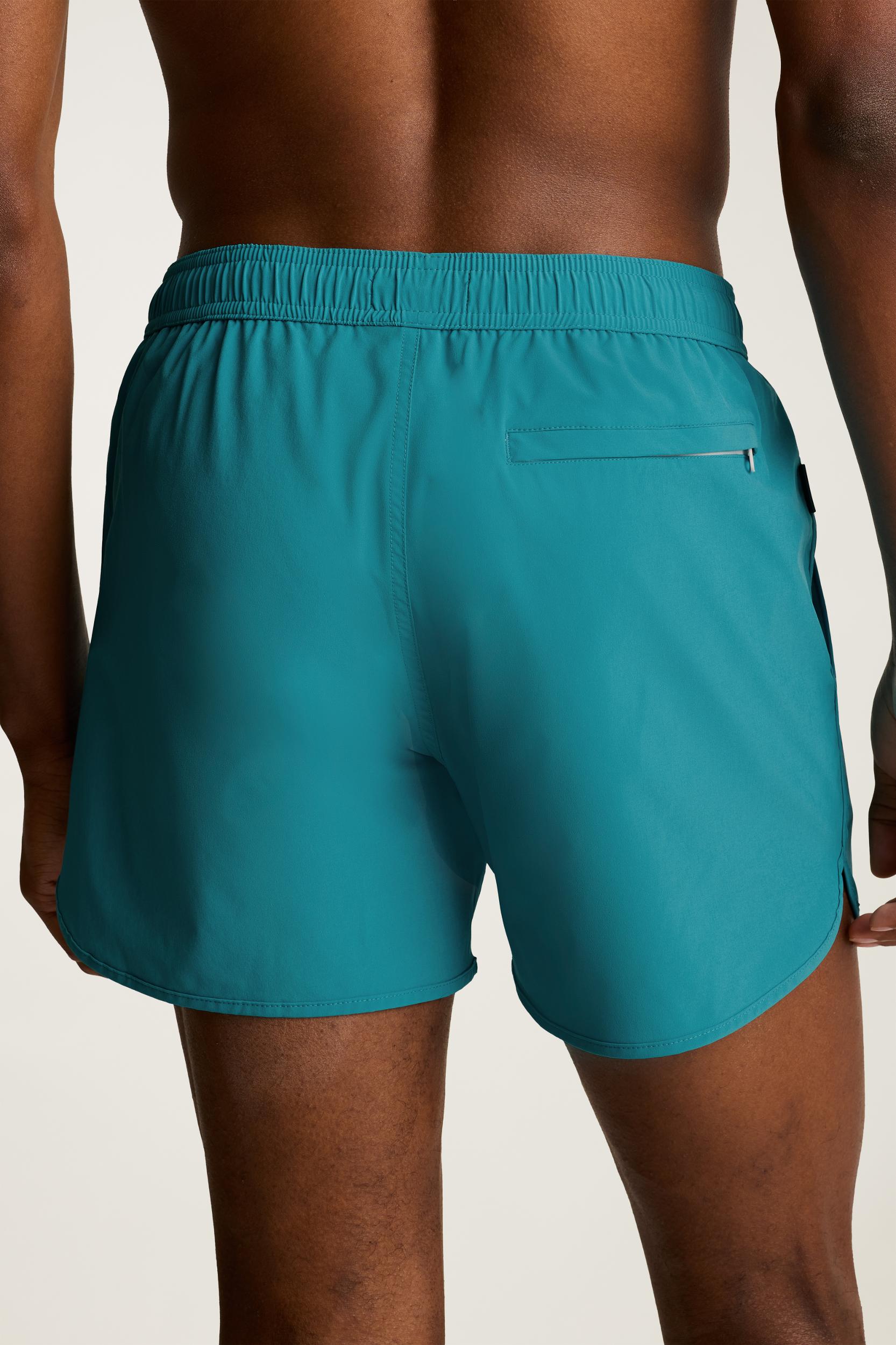 Colorful trunks with a shorter, curved hem, just like your dad used to wear.