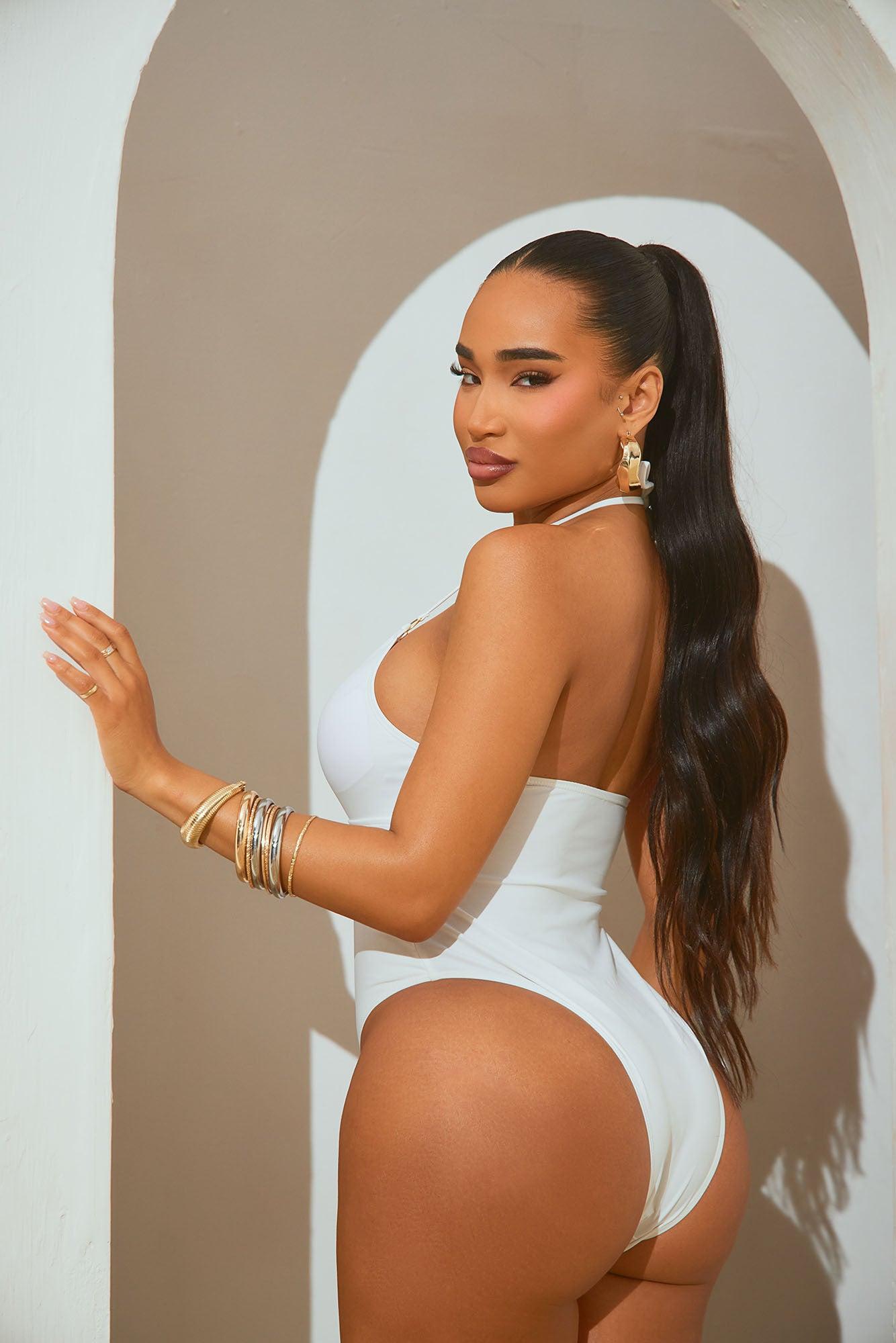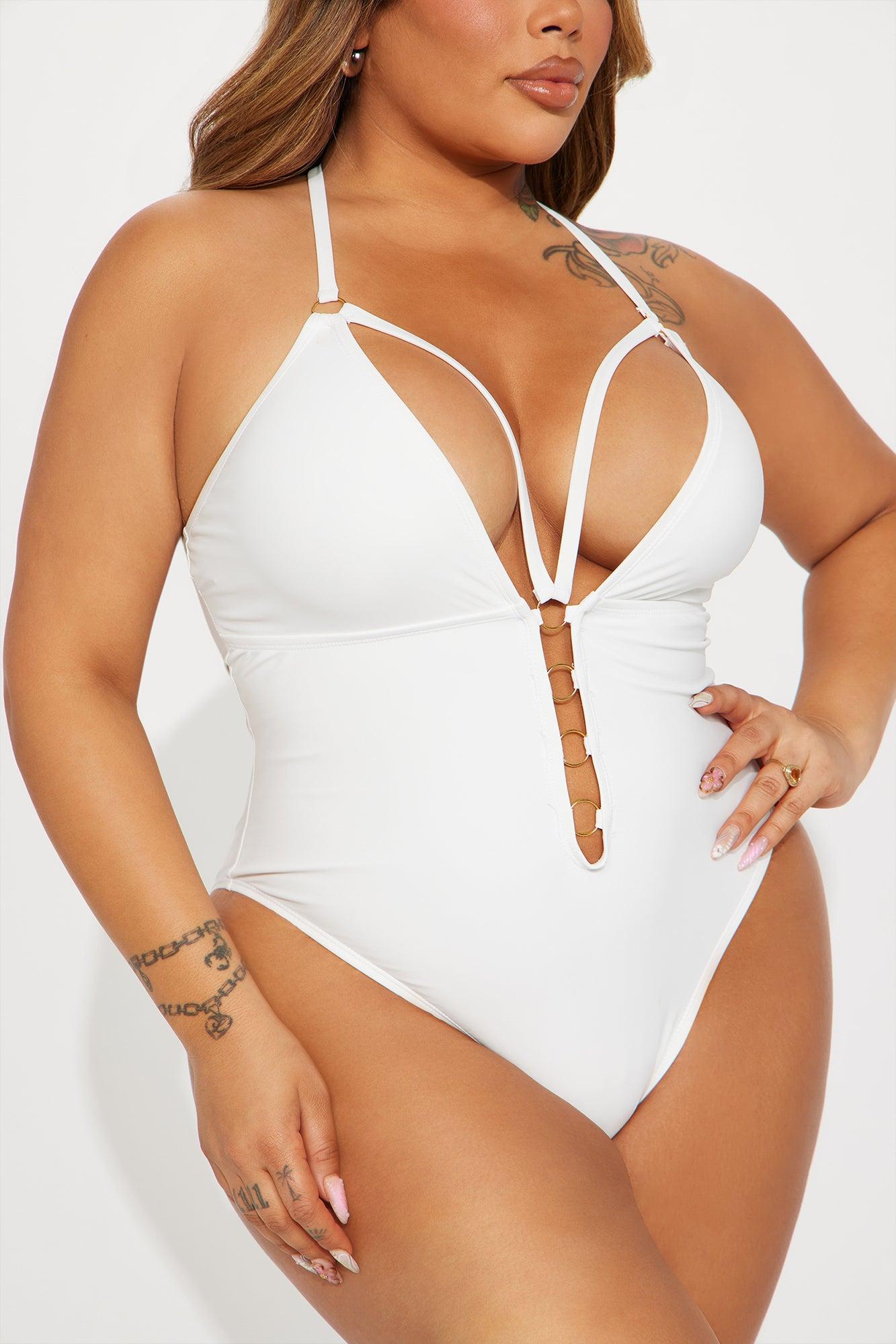 Available In Black, Purple, Red And White. 1 Piece Ensemble Swimsuit Halter Neck Ties O-Rings Deep V-Neck Removable Cups Strappy Details High Leg Cut Cheeky Full Stretch Final Sale Shell 80% Nylon 20% Spandex Lining 92% Polyester 8% Spandex Imported