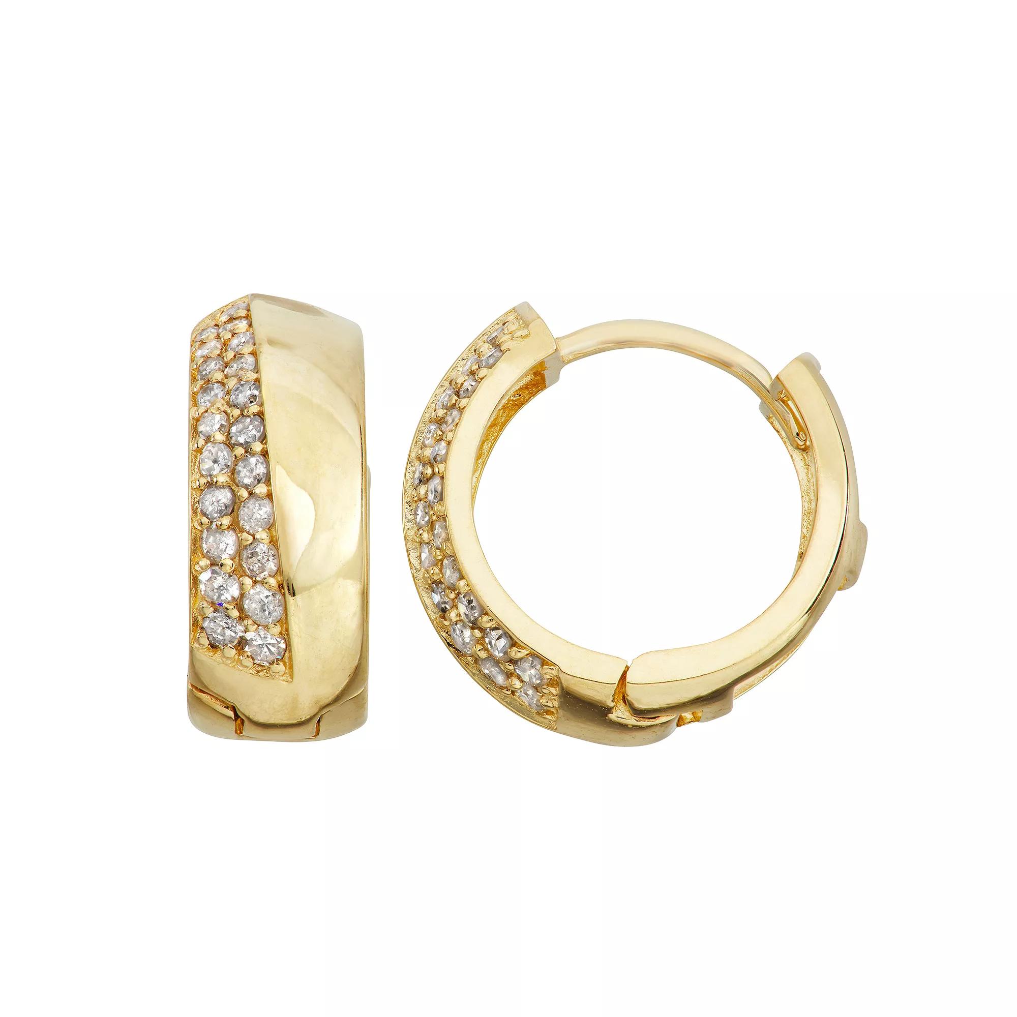 Elegant style is easy when you wear these diamond huggie hoop earrings. Elegant style is easy when you wear these diamond huggie hoop earrings. Length: 14 mm Backings: click-it Metal: 10k gold Finish: polished Packaging: boxedDIAMOND DETAILS Total weight: 1/3 ct. Shape: round Setting: prong Gemstones may have been treated to enhance their appearance. Special care may be required. Please visit our Gemstone Treatment & Special Care Guide for more information. Diamond weights are approximate. Diamond total weights may vary between .01 and .08 ct. Some diamonds have fewer than 17 facets. Image(s) may be enlarged to show detail. Please note, due to the high value of this item, a signature may be required upon delivery. Size: One Size. Color: White. Gender: female. Age Group: adult.