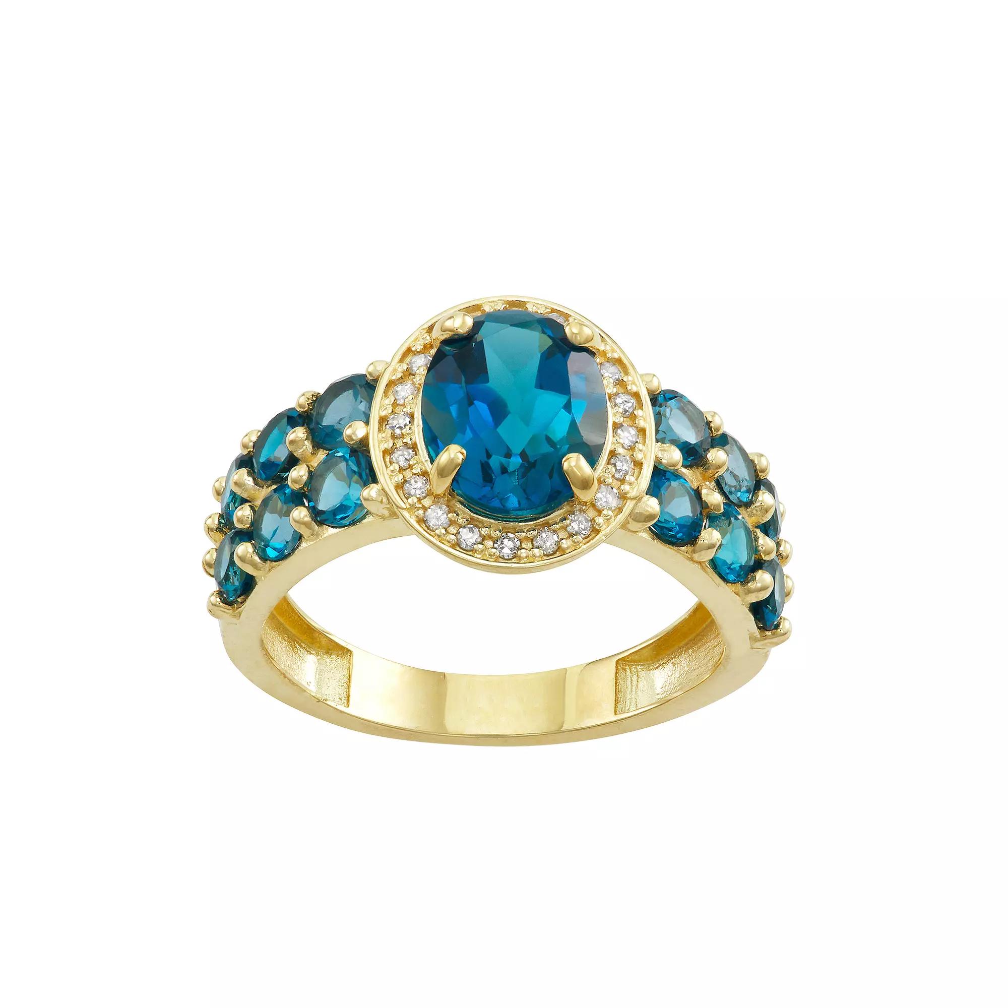 Featuring an oval-cut center stone set within a halo of dazzling diamond accents, this Tiara ring is simply stunning. Featuring an oval-cut center stone set within a halo of dazzling diamond accents, this Tiara ring is simply stunning. Metal: 10k gold Packaging: boxed Width: 13 mm Finish: polishedSTONE DETAILS Center stone size: 9 mm x 7 mm Shape: oval Setting: paveDIAMOND DETAILS Total weight: 1/10 ct. Shape: round Setting: prong Gemstones may have been treated to enhance their appearance. Special care may be required. Please visit our Gemstone Treatment & Special Care Guide for more information. Diamond weights are approximate. Diamond Total Weights may vary between .01 and .13 ct. Some diamonds consist of fewer than 17 facets. Image(s) may be enlarged to show detail. Size: 6. Color: Blue. Gender: female. Age Group: adult.
