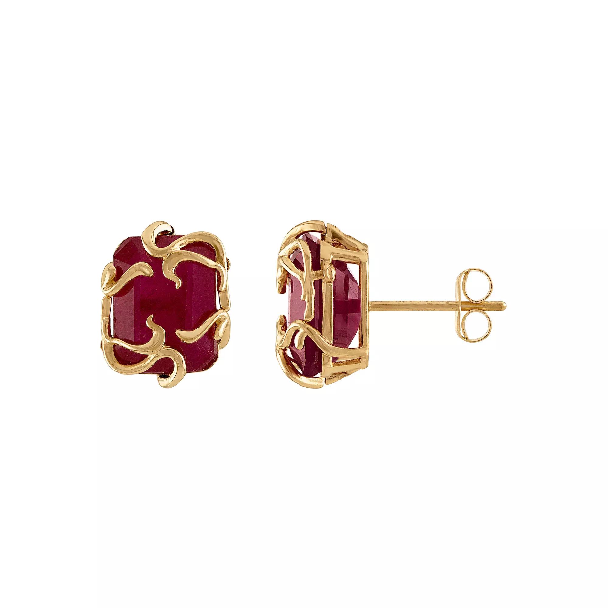 Add an eye-catching esoteric touch to any ensemble with these 10k gold Tiara ruby snake stud earrings. Add an eye-catching esoteric touch to any ensemble with these 10k gold Tiara ruby snake stud earrings. FEATURES Length: 9.5 mm Backings: post Nickel free Metal: 10k gold Finish: polished Packaging: boxedSTONE DETAILS Stone type: ruby Total weight: 5 ct. Center stone size: 8 mm x 6 mm Center stone weight: 5 ct. Shape: emerald cut Setting: prong Gemstones may have been treated to enhance their appearance. Special care may be required. Please visit our Gemstone Treatment & Special Care Guide for more information. Gender: female. Age Group: adult.