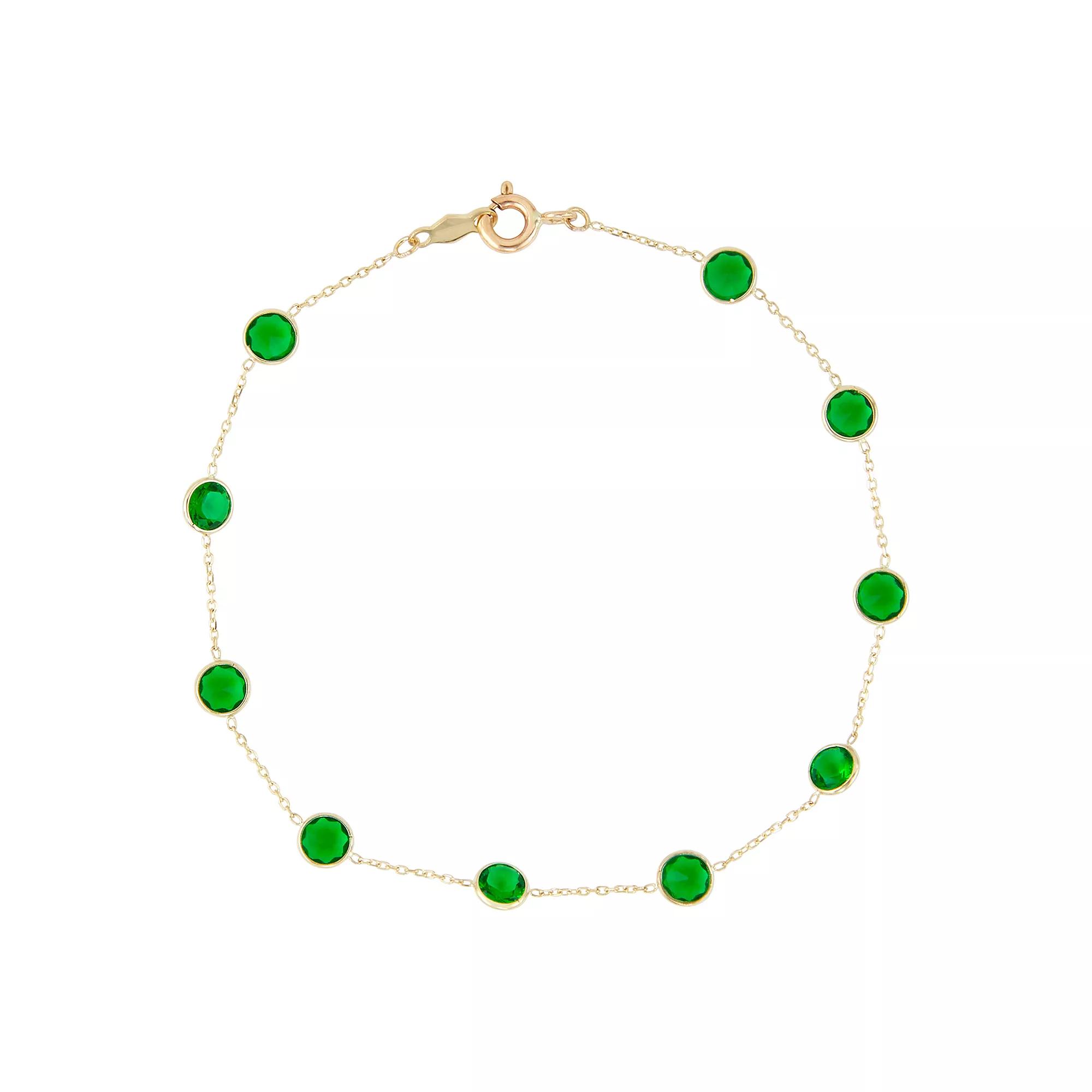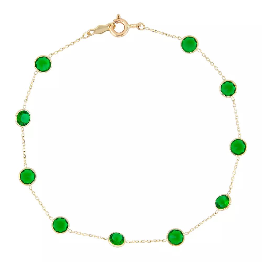 Lovely lab-created emerald gemstones make this necklace a true masterpiece. Lovely lab-created emerald gemstones make this necklace a true masterpiece. 7 in. Metal: 10k gold Finish: polished Packaging: boxedSTONE DETAILS Stone type: simulated Emerald Total weight: 2 1/2 ct. Center stone weight: 1/4 ct. 4 mm Shape: round Setting: channel Size: One Size. Color: Green. Gender: female. Age Group: adult.