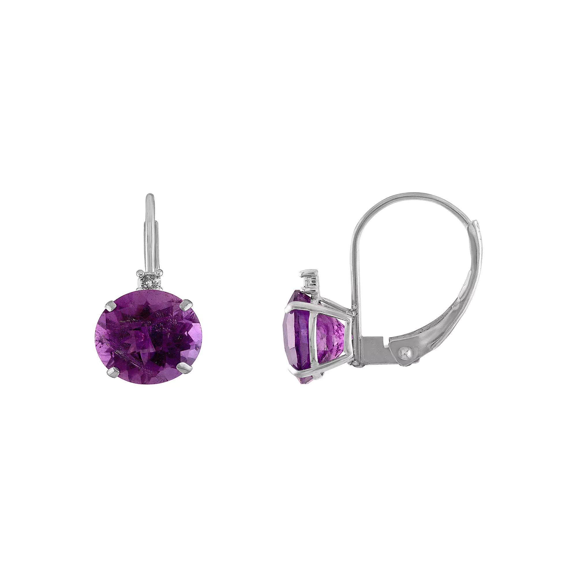 Elevate your ensemble with the elegant beauty of these Tiara 10k White Gold Amethyst & Diamond Accent Leverback Earrings. Elevate your ensemble with the elegant beauty of these Tiara 10k White Gold Amethyst & Diamond Accent Leverback Earrings. FEATURES Length: 15mm Closures: leverback Metal: 10k white gold Plating: rhodium Finish: polished Packaging: boxedSTONE DETAILS Stone type: amethyst Total weight: 2 1/2 ct. 7mm Shape: round Setting: prongDIAMOND DETAILS Total weight: less than 1/10 ct. Shape: round Setting: prong Size: One Size. Gender: female. Age Group: adult.